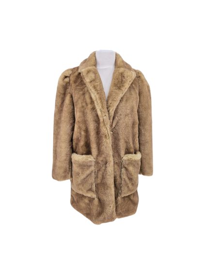heboučký kabát z umělé kožešiny , není těžký , má kapsy , s podšívkou, zapínání na háčky