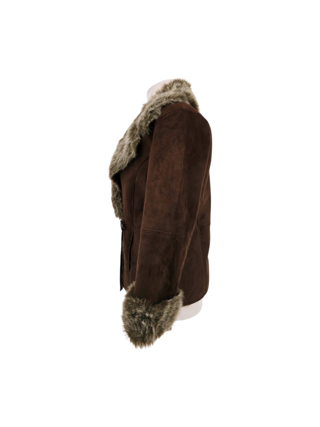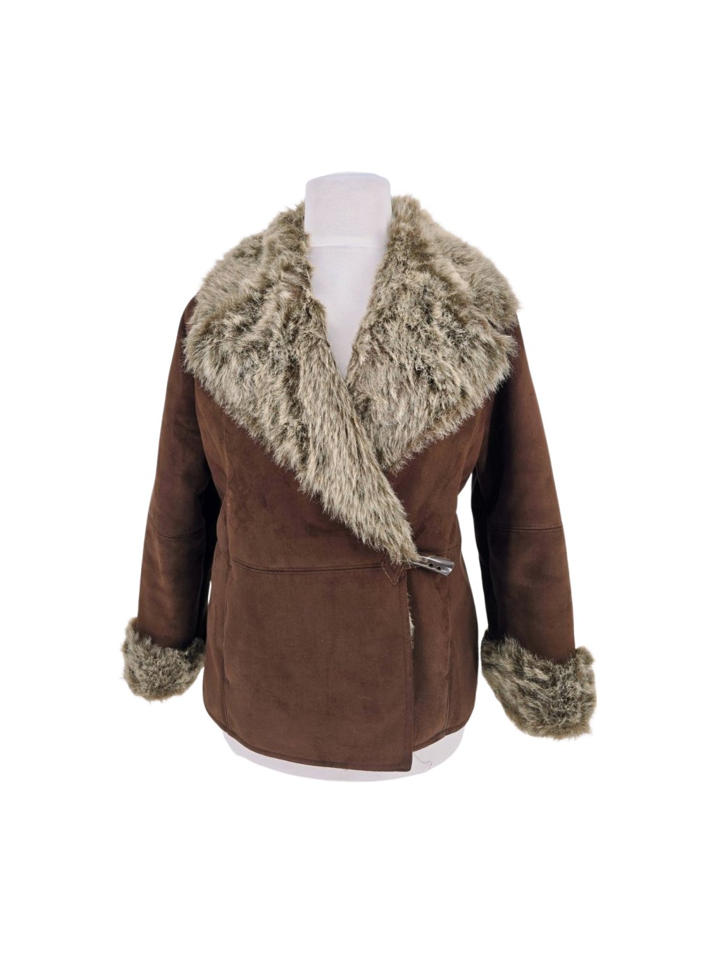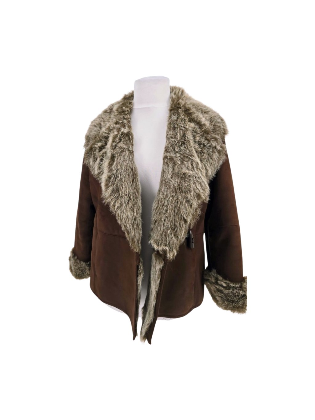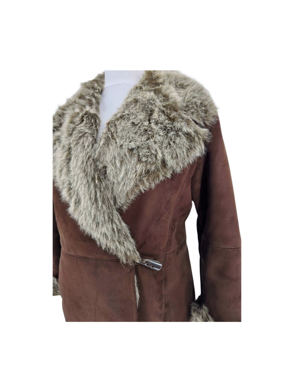 heboučký kabát z umělé kožešiny , není těžký , má kapsy , s podšívkou, zapínání na háčky