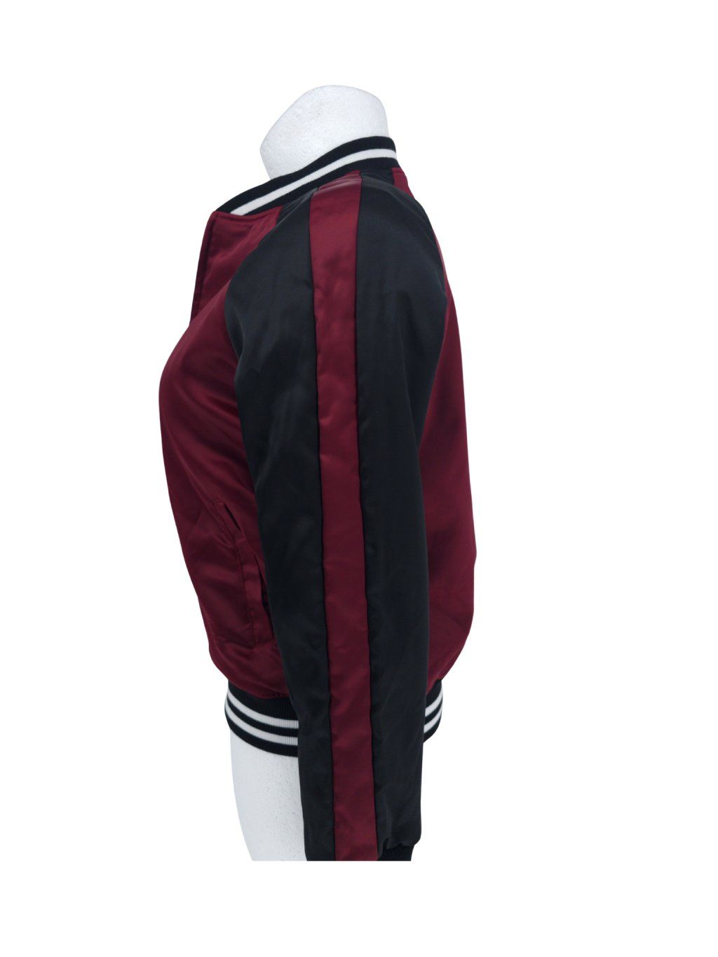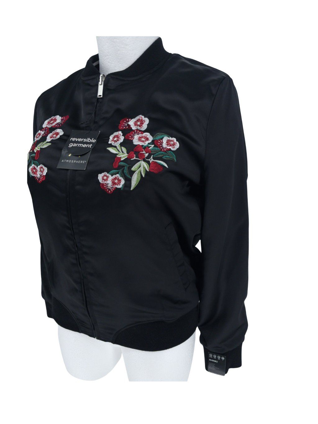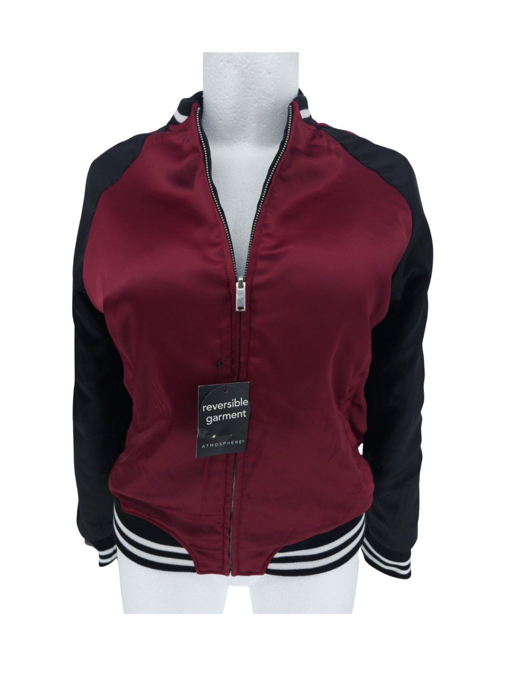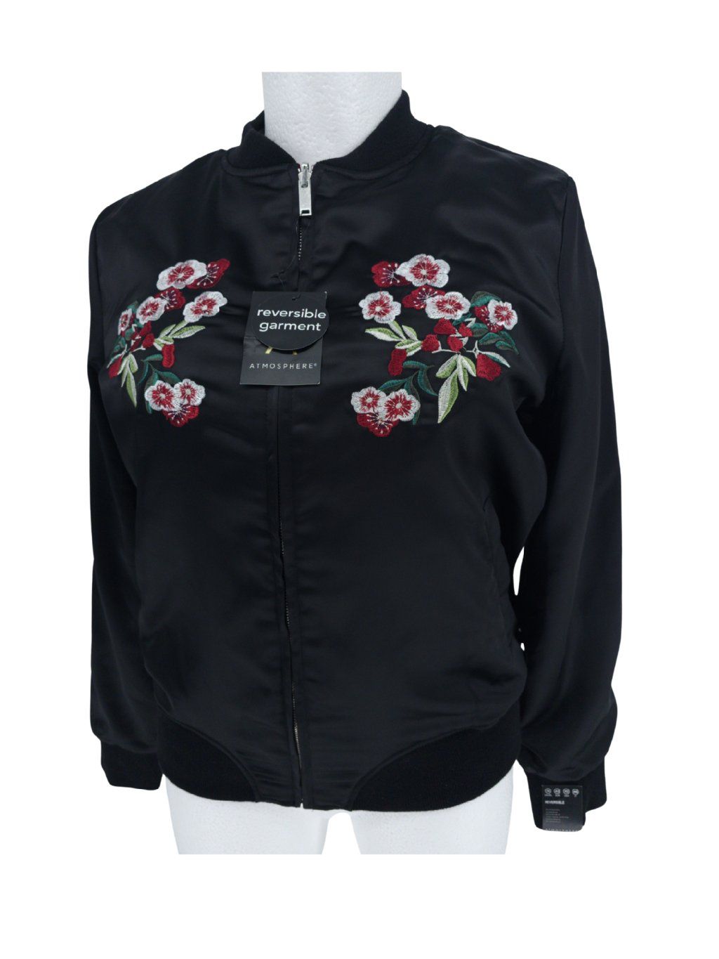 vel. UK 14 EUR 42 - černá saténová bundička s výšivkou na jedné straně a vínovo - černá z druhé strany , maličko zateplená , ale na zimu to není , VADA - na vínové straně nepatrně ušpiněná - FOTO - jinak nová s cedulkami