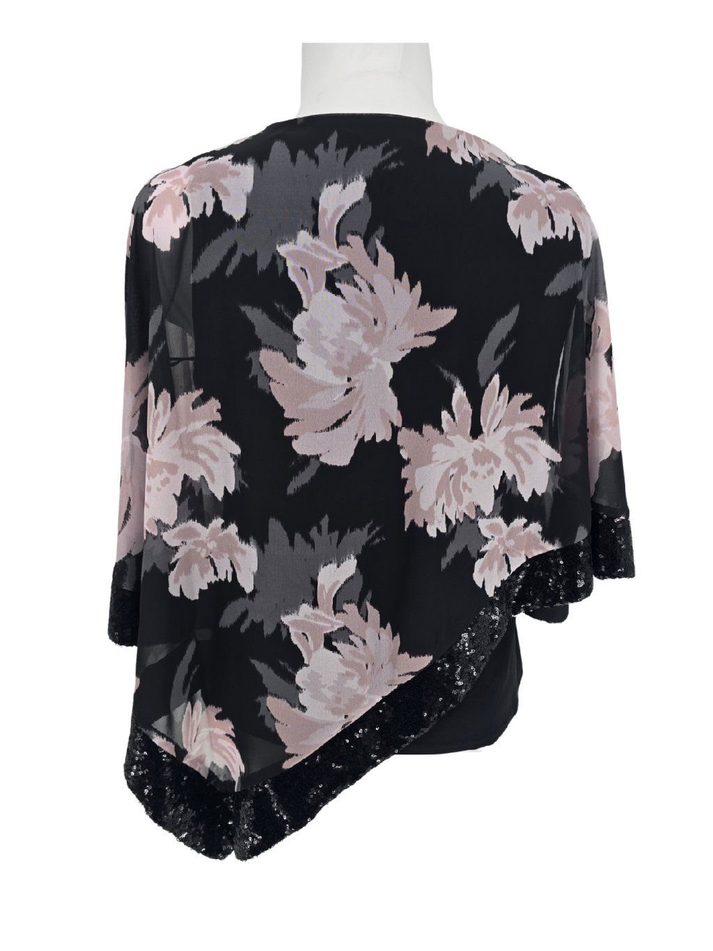 vel. UK 18 EUR 44/46 - zajímavý společenský top s flitry , spodní část pružná černá přes to asymetrická vrstva - široký střih s průstřihny na ramenou