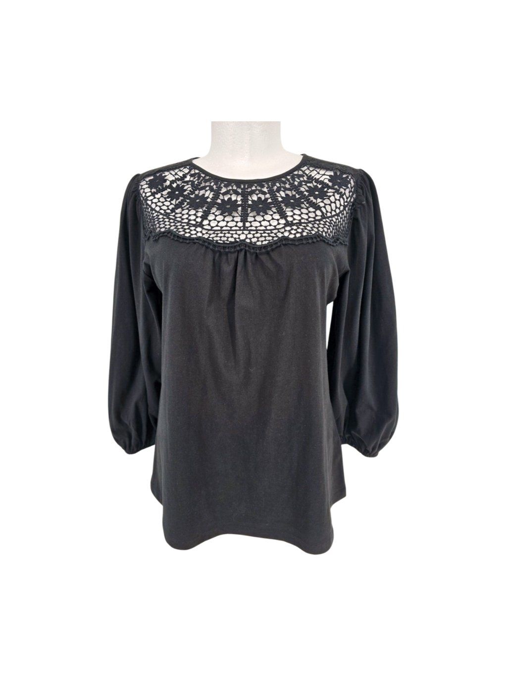 vel. UK 16 EUR 44 - kvalitní pružná bavlněná halenka s krajkou , sytě černá - foto zkresluje