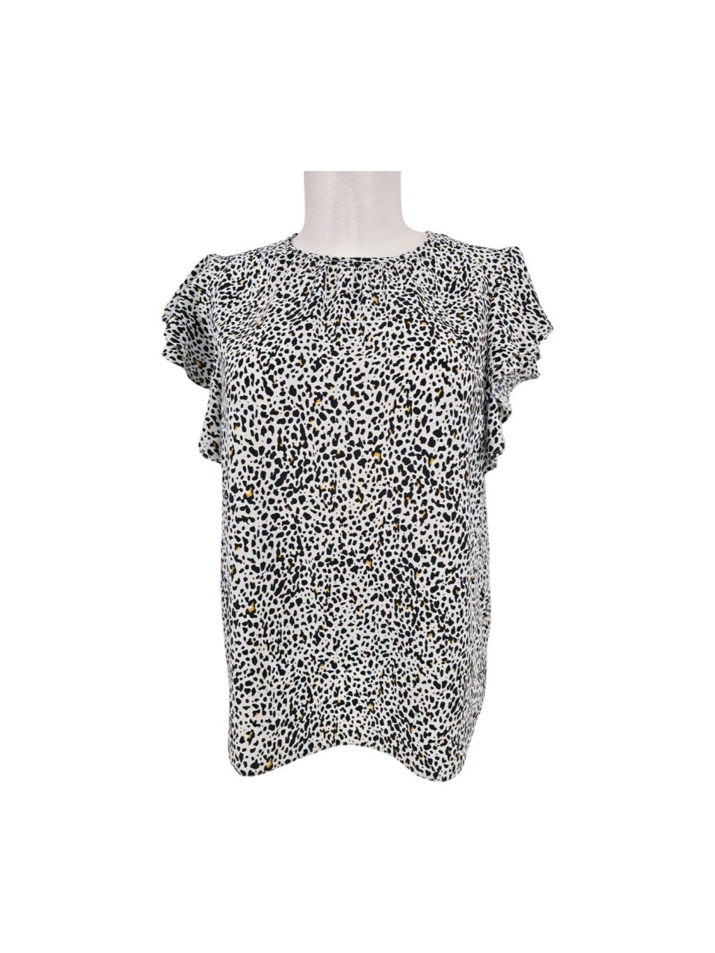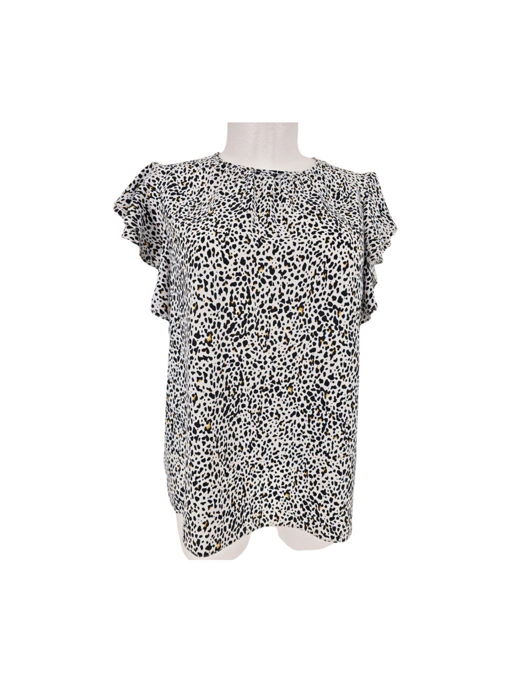 vel. UK 18 EUR 44/46 - volnější halenka s dvojitým volánkem místo rukávu , mat. nepruží