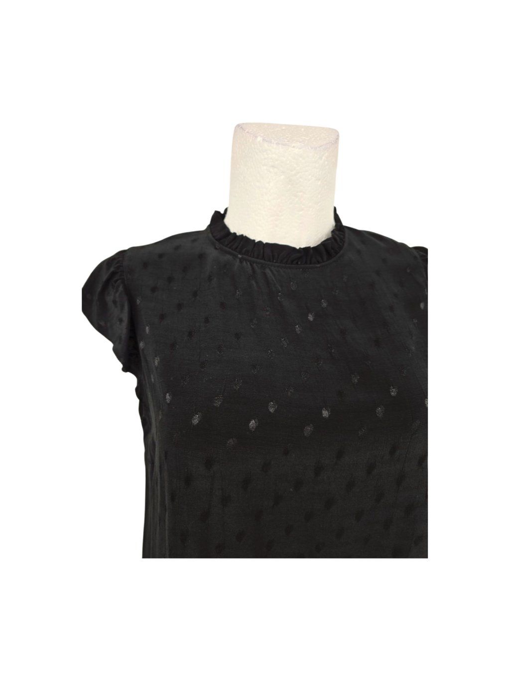 vel. UK 18 EUR 44/46 - volnější halenka s dvojitým volánkem místo rukávu , mat. nepruží