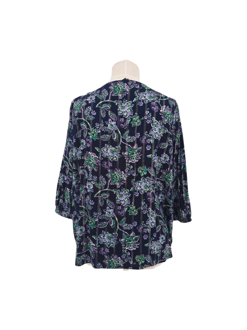 krémová tunika se zelenými květy , od pasu dolů rozšířená, s širokými rukávy