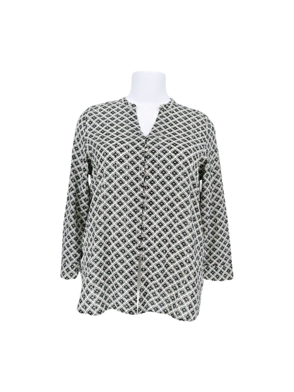 zelená halenka s černou lesklou výšivkou, zapínání za krkem , vespod podšívka