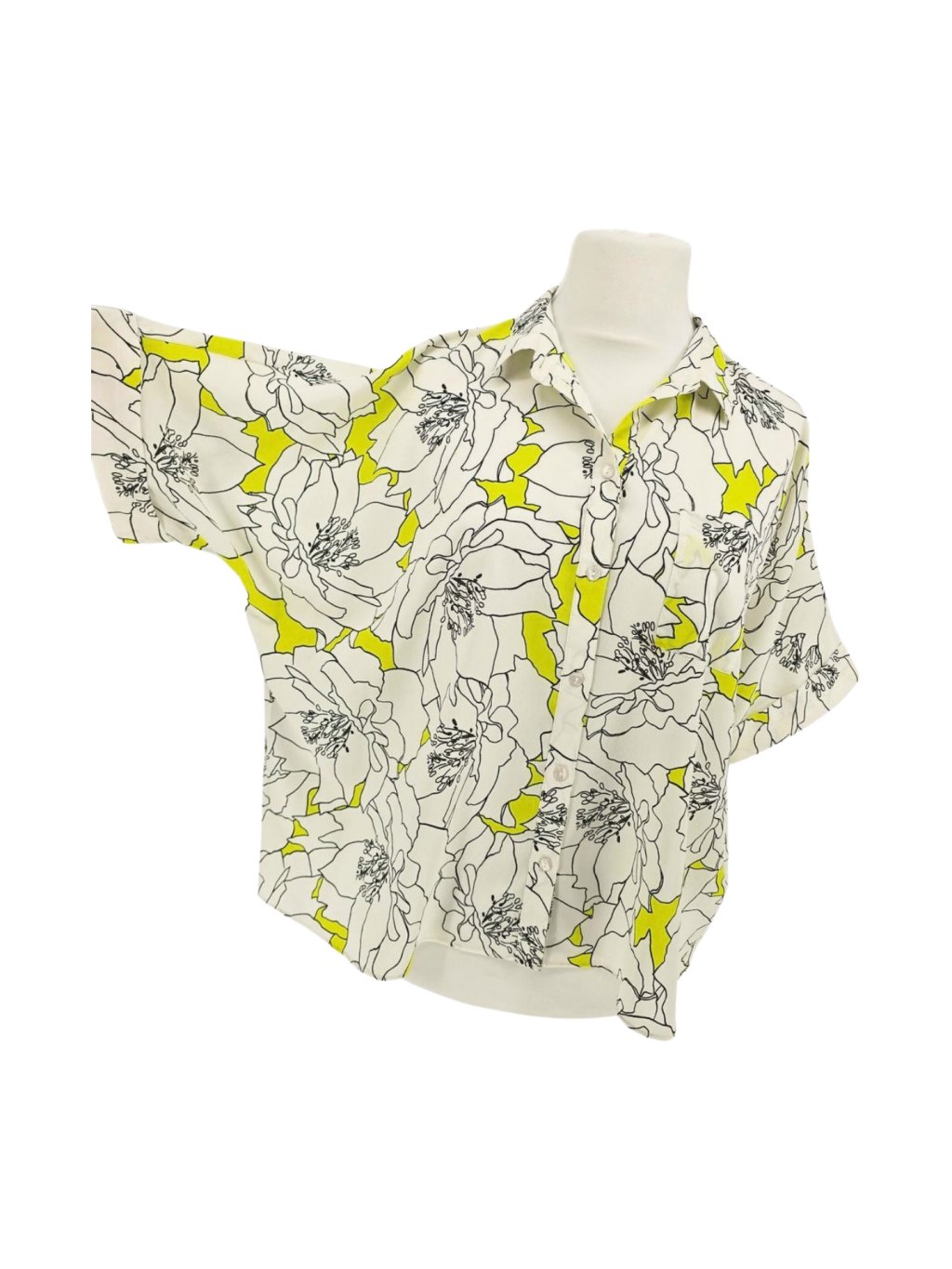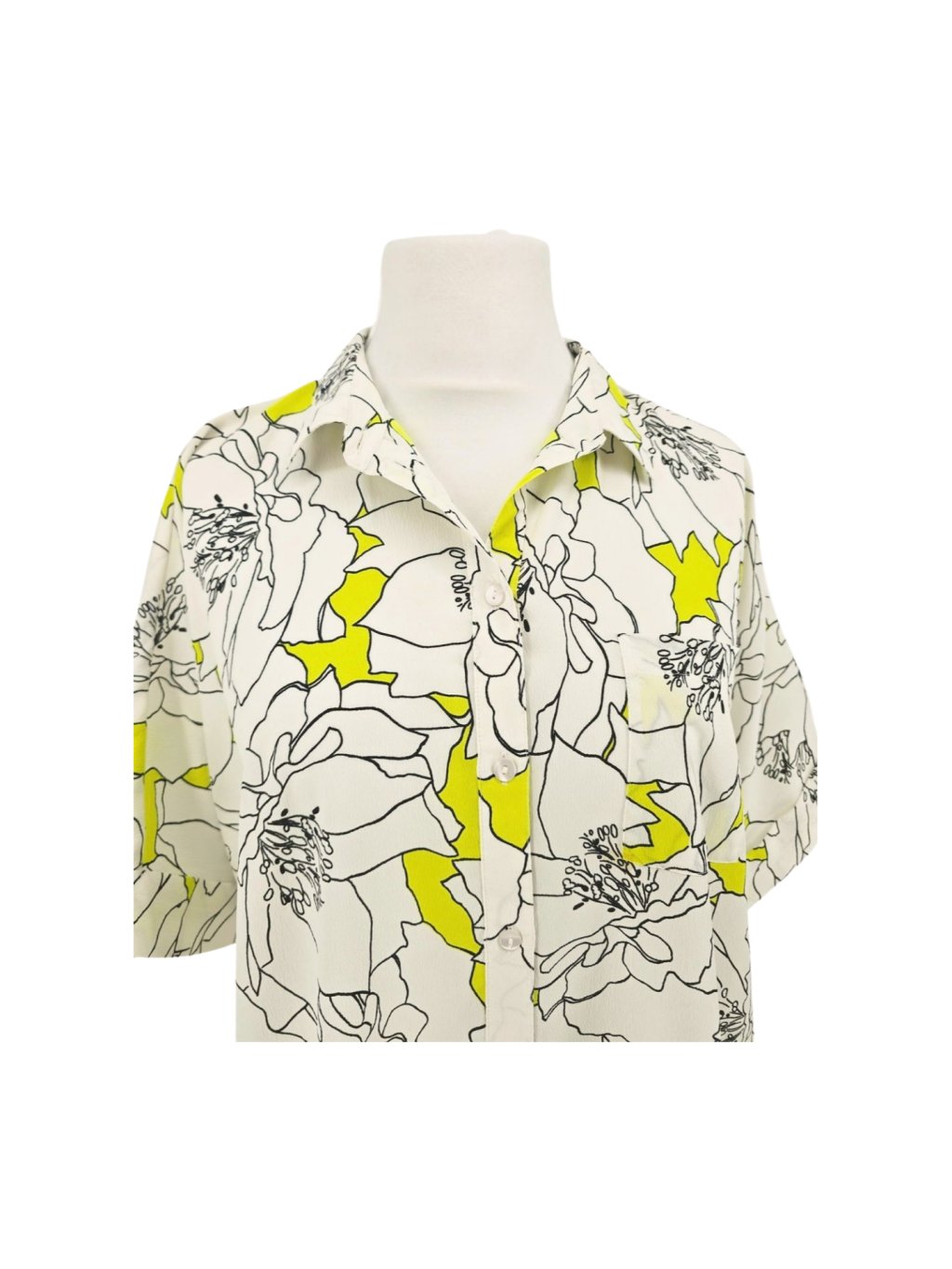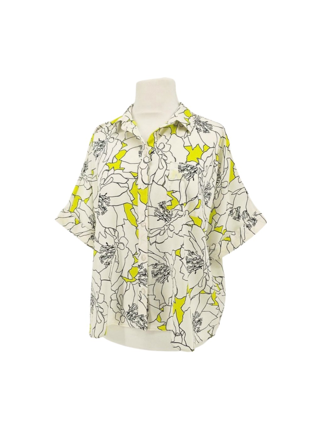 krémová tunika se zelenými květy , od pasu dolů rozšířená, s širokými rukávy