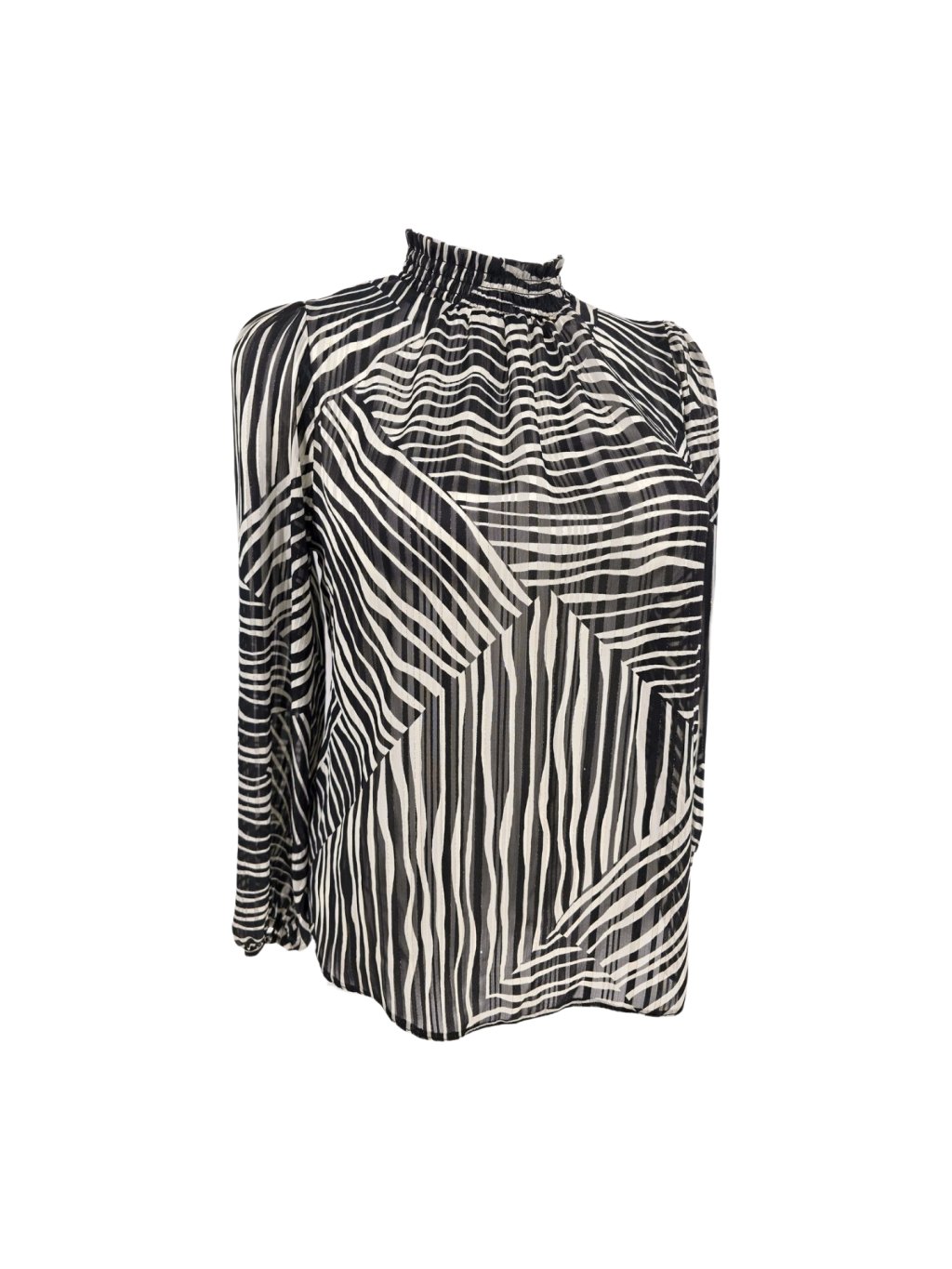 vel. neuvedena cca 40/42 - lehčí halenka s volány a stříbrnou výšivkou