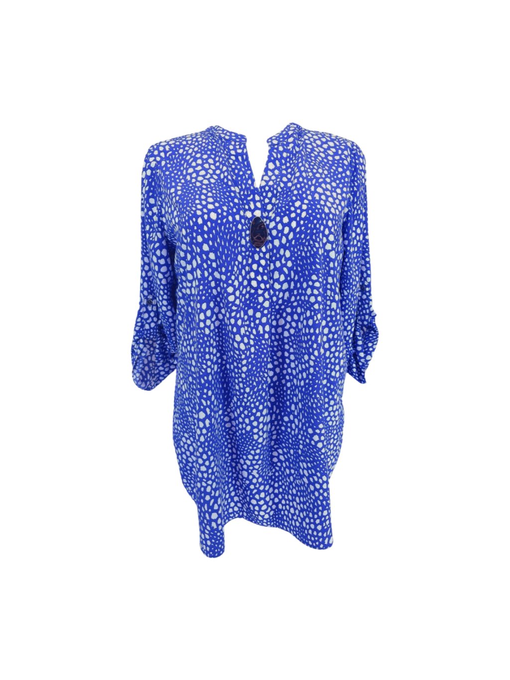 vel. UK 12 EUR 40 - přední díl delší - dole do kulata - jde i zavázat , zadní díl kratší nabraný do lemu , široké rukávy