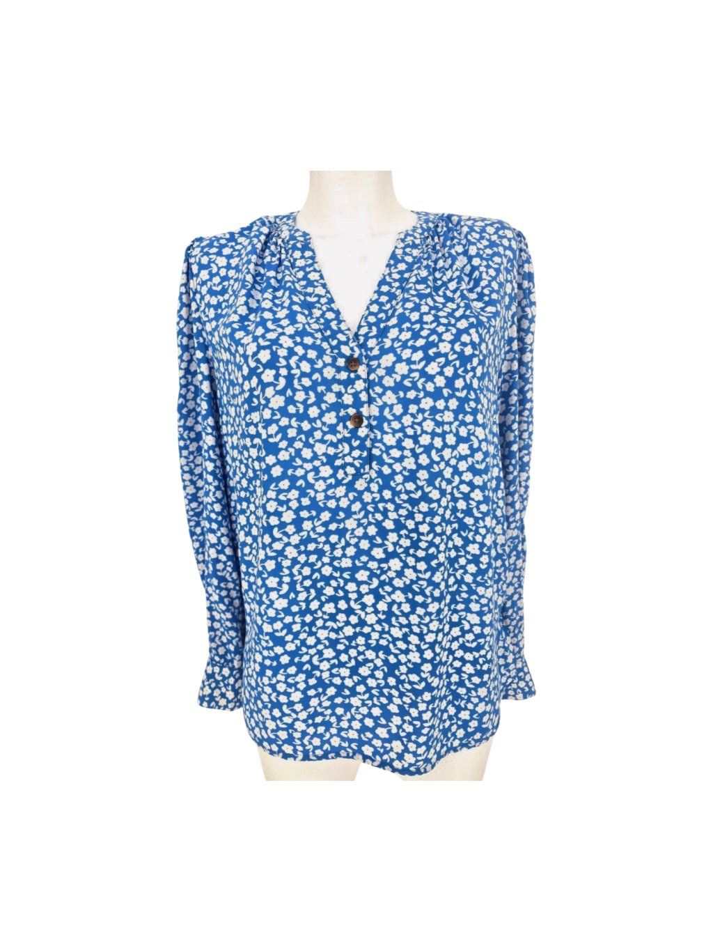 vel. UK 12 EUR 40 - průsvitná modrá halenka s lehce plastickým vzorek, nepruží