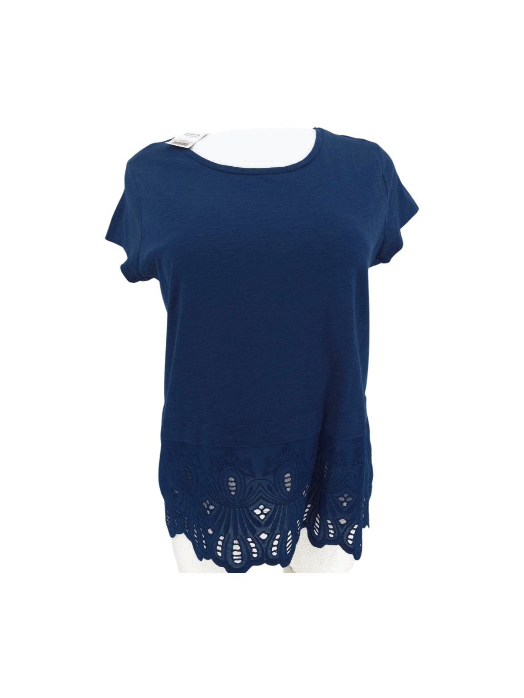 vel. UK 18 EUR 44/46 - pružný středně silný topík nebo slabší svetřík , s háčkovanými lemy