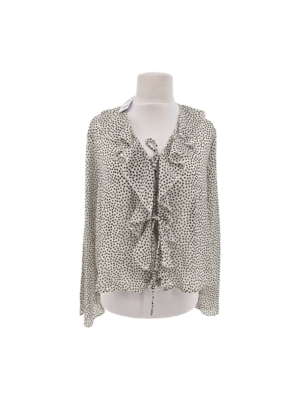 krémová tunika se zelenými květy , od pasu dolů rozšířená, s širokými rukávy