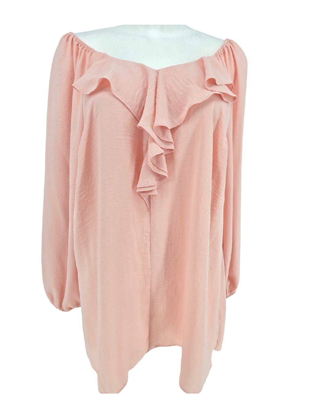 vel. UK 24 EUR 50/52 - pěkná splývavá vzdušná halenka , materiál má lehce mačkaný vzhled , na ramenou do gumičky
