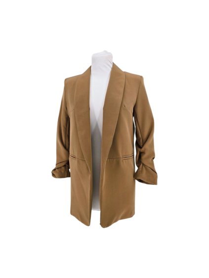 hnědé pružné lehčí sako bez zapínání s podšívkou , rukávy nařasené všitou gumou