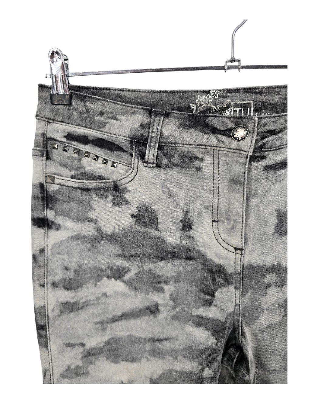 vel. UK 14 EUR 42 - pružné rifle se zajímavým vzorem v šedých tónech