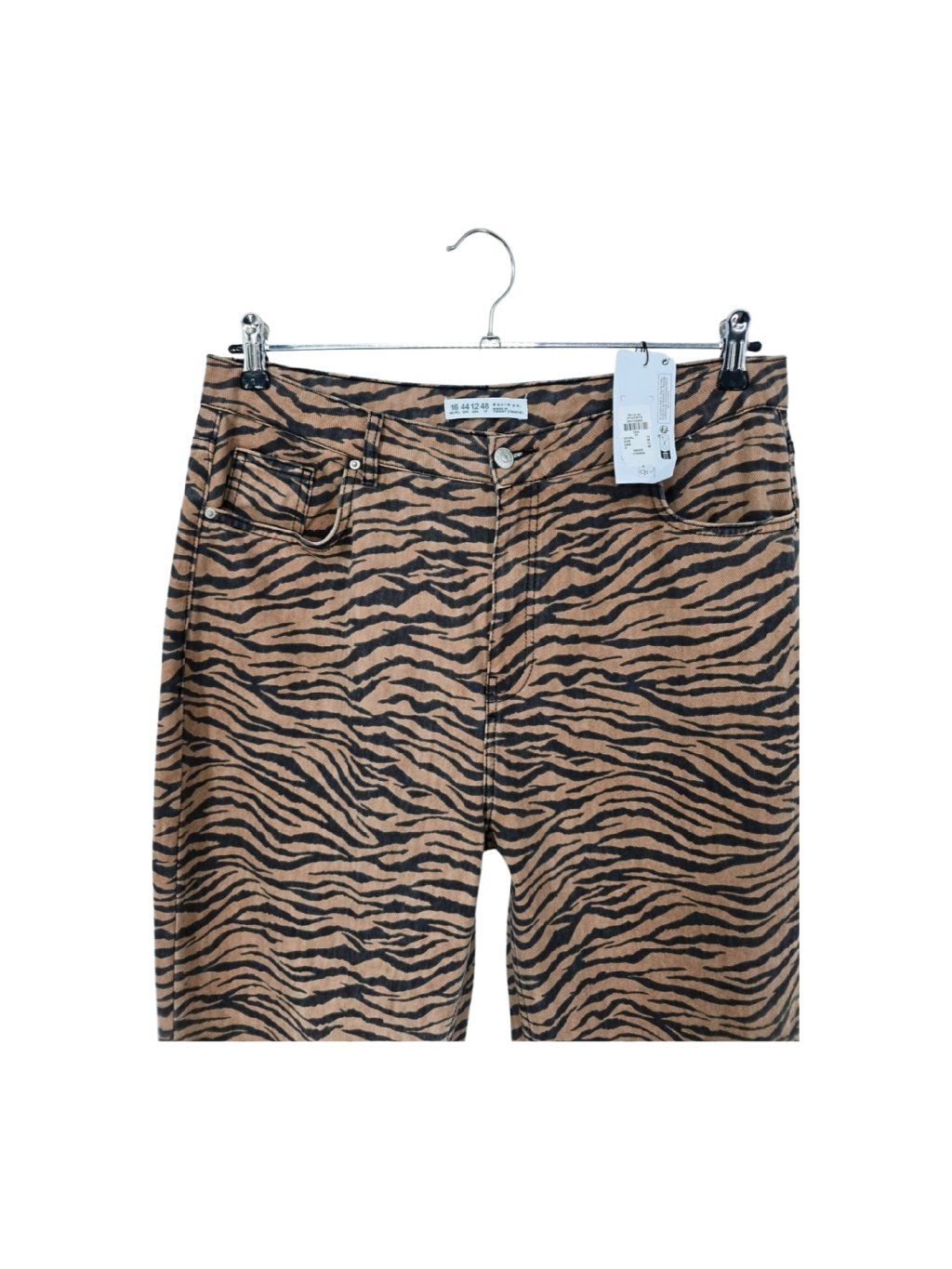 vel. UK 16 EUR 42/44 - high waist rifle ve zvířecím vzoru , širší nohavice straight leg