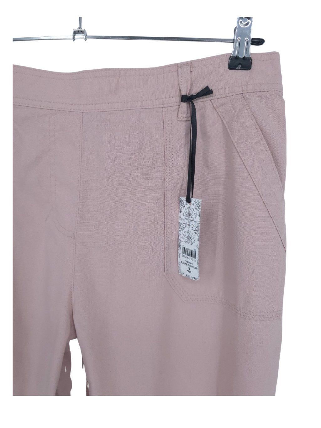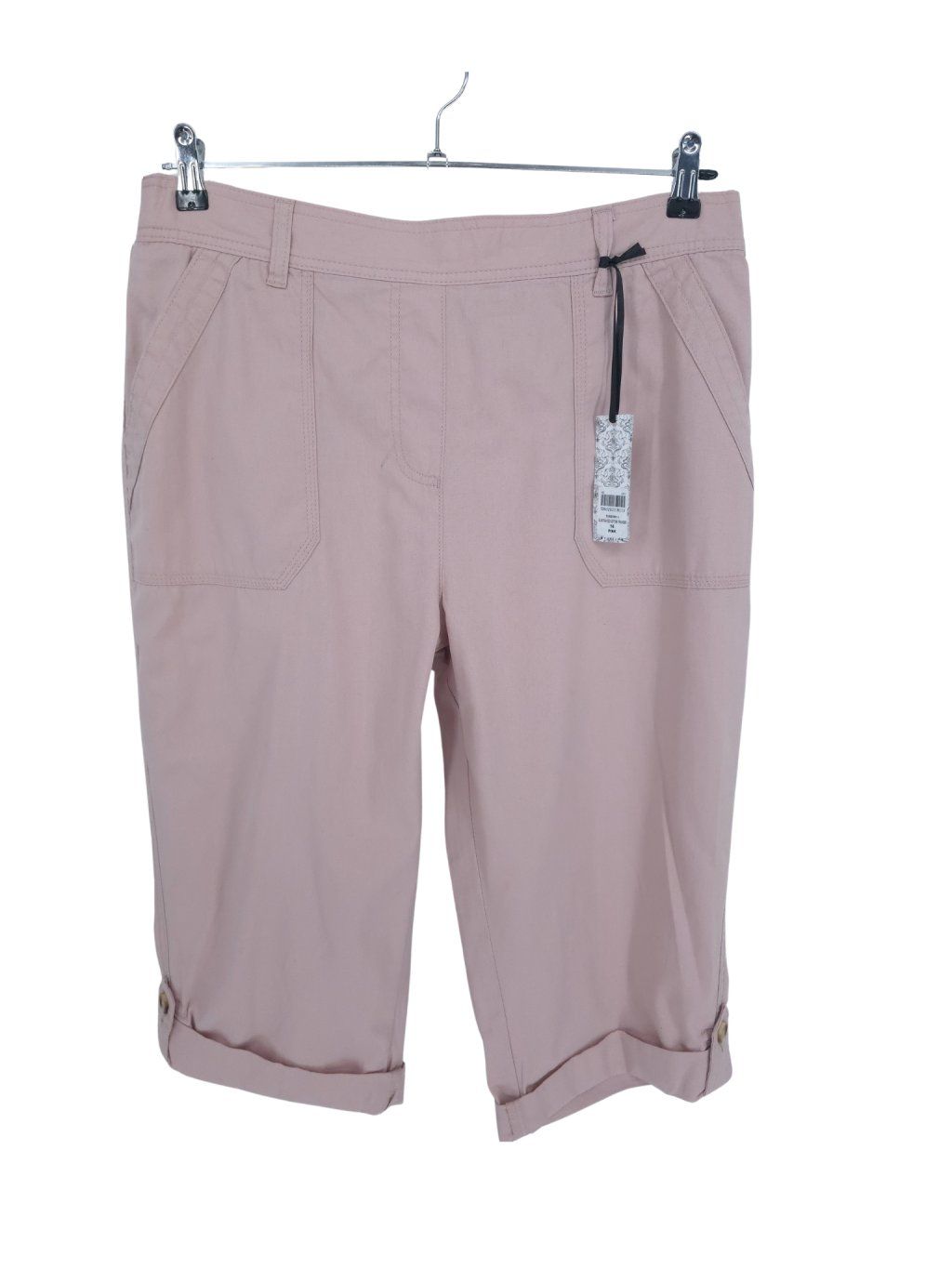 vel. UK 16 EUR 44 - pěkné pohodlné bavlněné kalhory ve starorůžové barvě , jdou rolovat , vzadu v pase pružný náplet s gumou , jemná starorůžová barva
