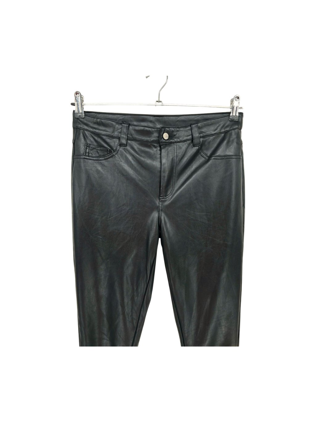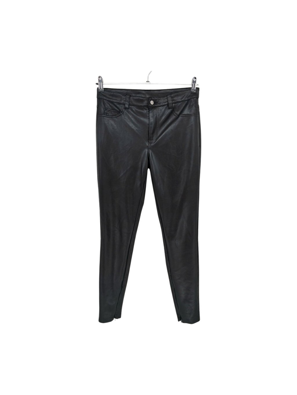 světle hnědé pružné legíny z umělé kůže , v pase zip na boku a zipy jsou i na konci nohavic
