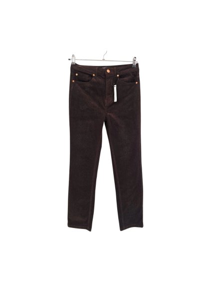 pružné tmavě hnědé kalhoty z jemného manšestru