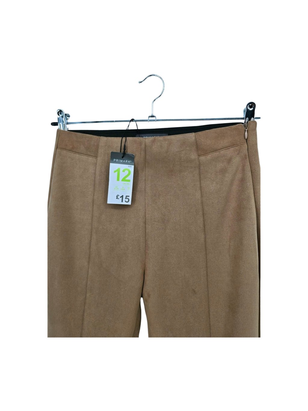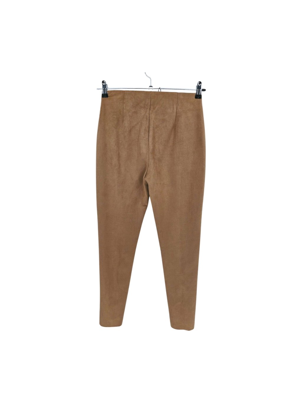 světle hnědé pružné legíny z umělé kůže , v pase zip na boku a zipy jsou i na konci nohavic
