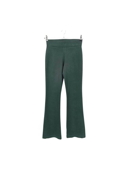 pružné tmavě zelené kalhoty s širokou gumou v pase