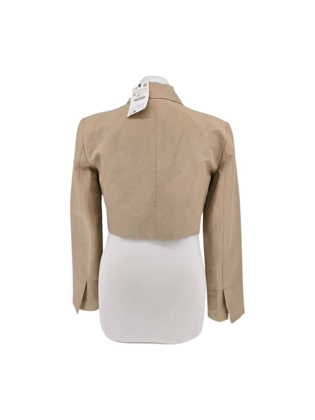 hnědé pružné lehčí sako bez zapínání s podšívkou , rukávy nařasené všitou gumou