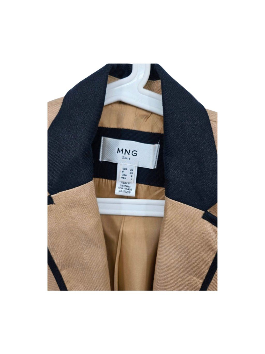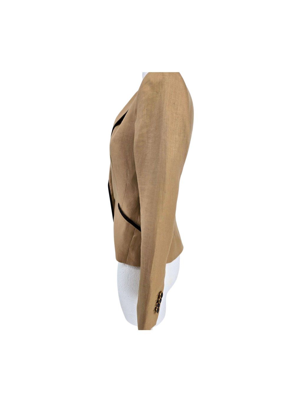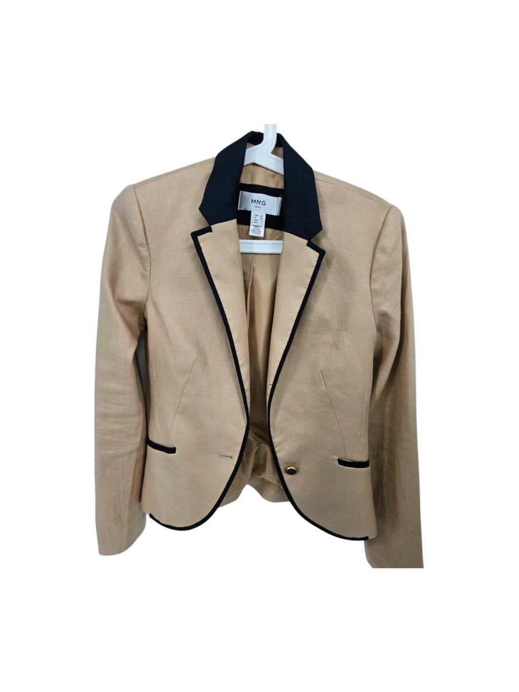 vel. 32 - pískové sako s černými detaily , hezky propracované , kratší vypasovaný střih