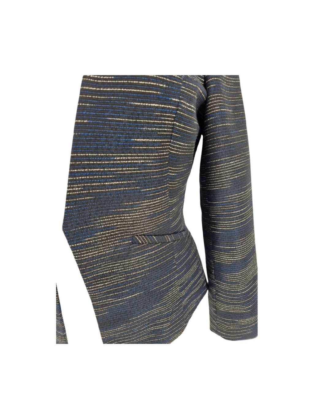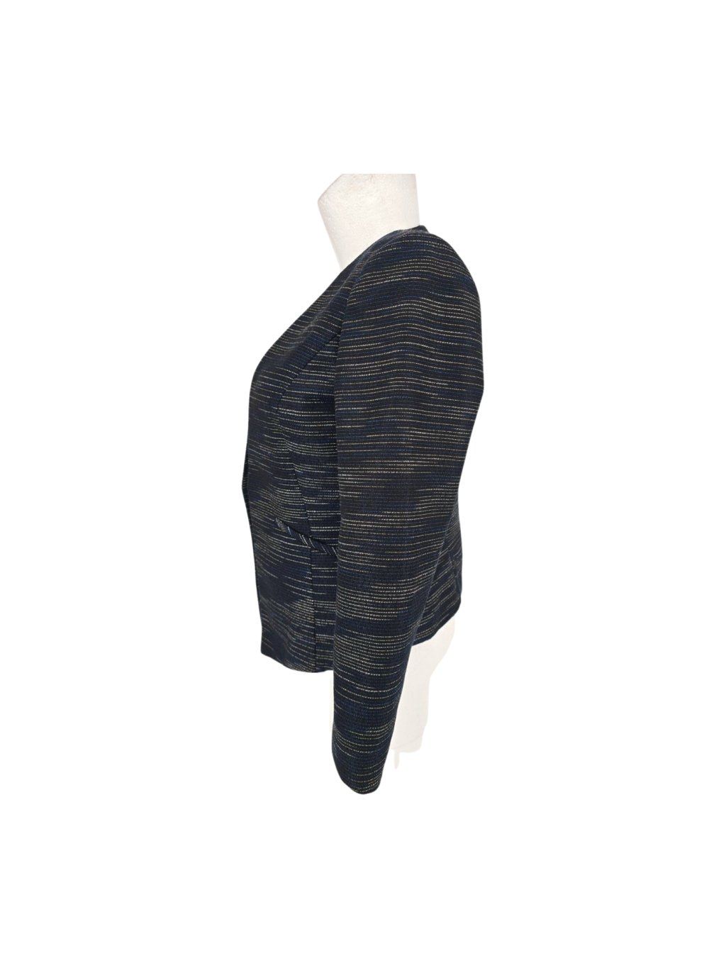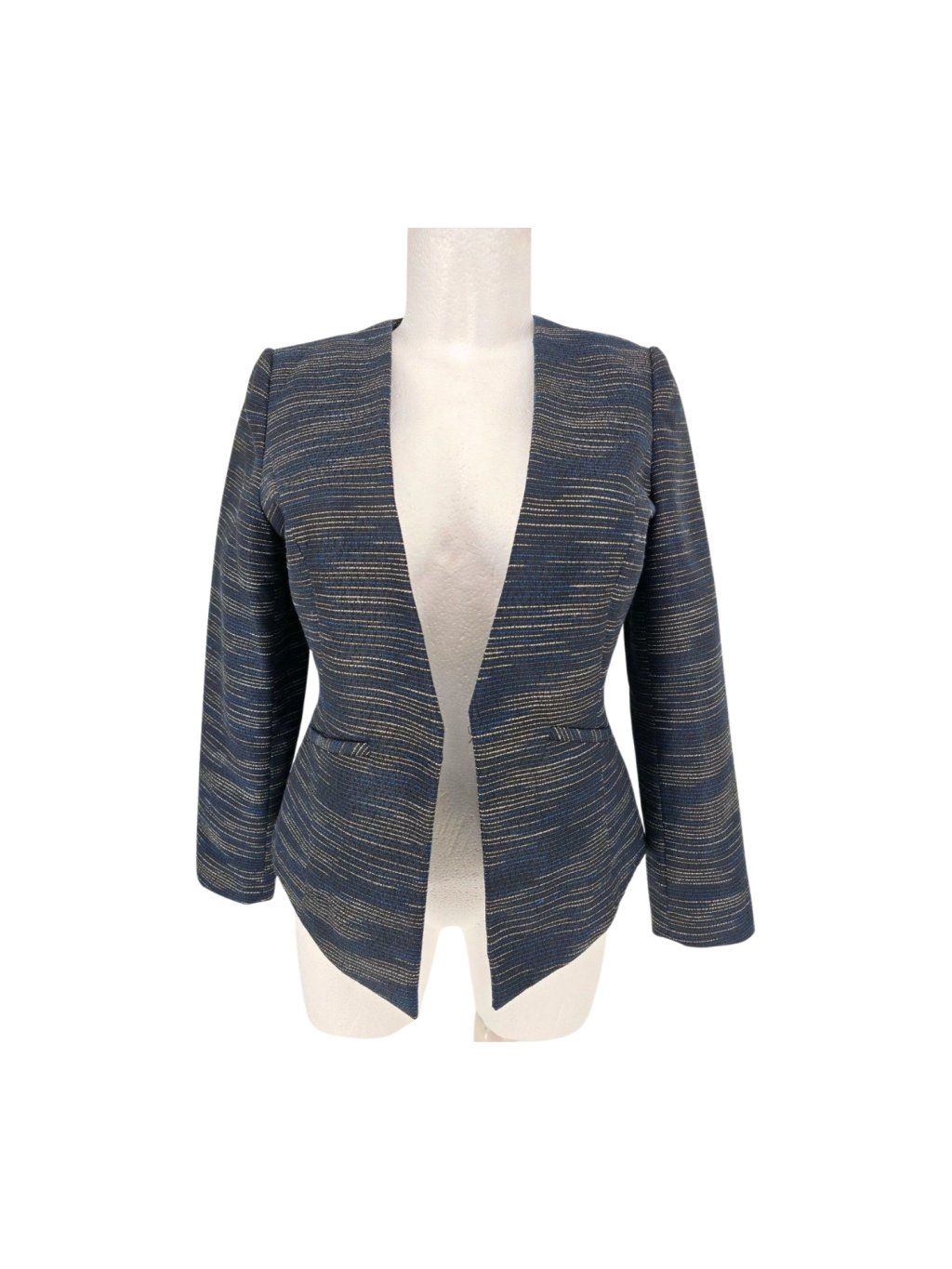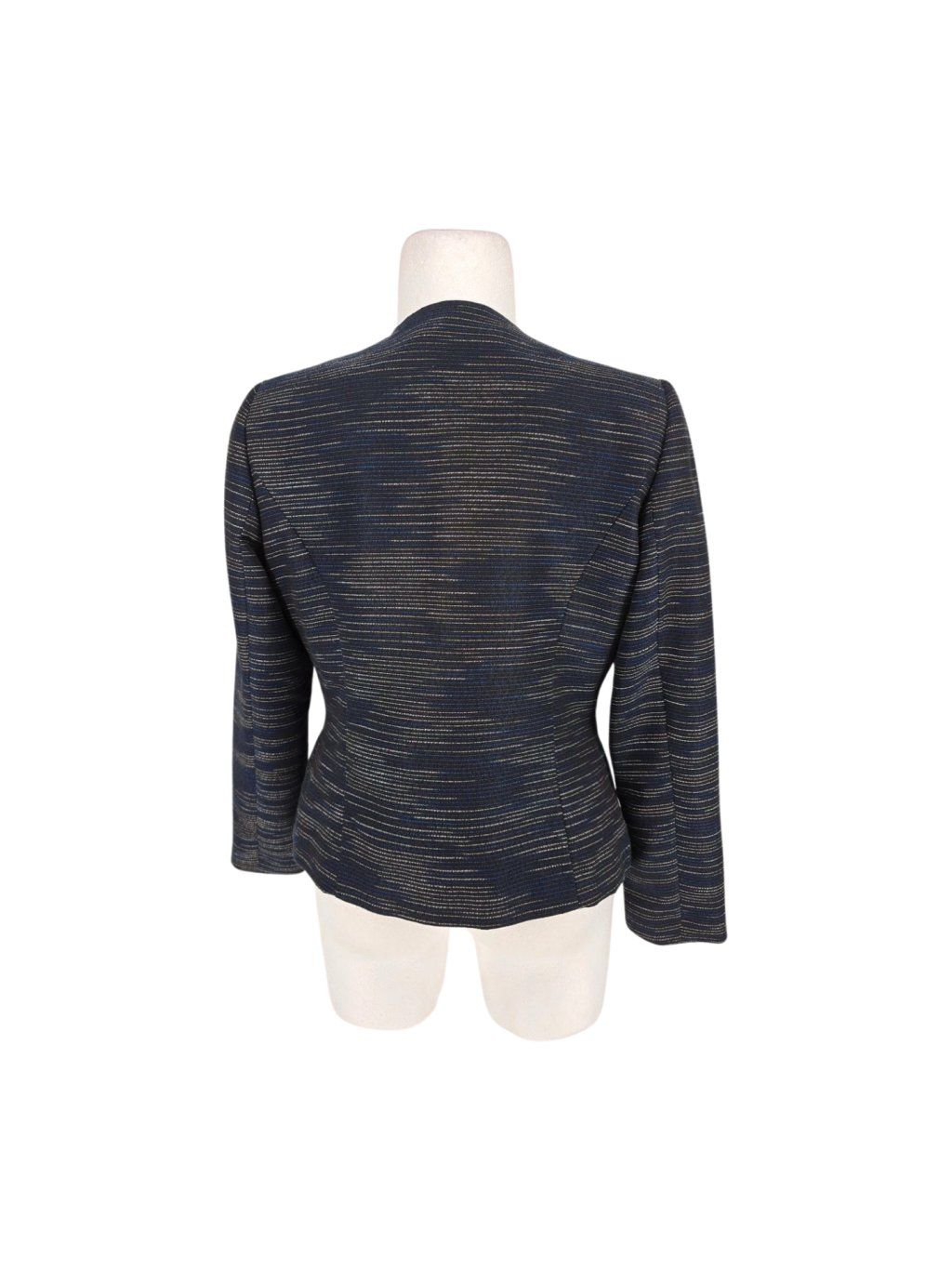 vel. UK 16 EUR 44 - pěkné sako bez zapínání , hezky drží tvar , s podšívkou , černá barva prošívaná modrými a bílými proužky
