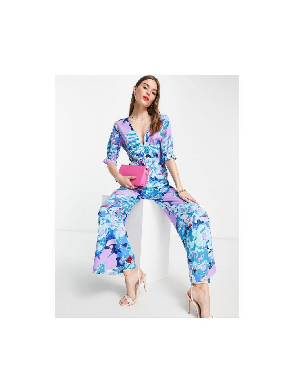 vel. UK 14 EUR 40/42 - krásný veselý overal s širšími nohavicemi , v pase guma , mat. nepruží , lze nosit i na ramenou - přizpůsobí se zavazováním