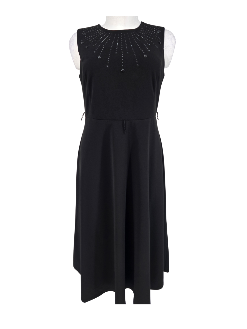 vel. 42 , ale i 44 - luxusní šaty , které využijete na mnoho příležitostí , když je doplníte saténovou stuhou v pase - klidně i na ples , pevnější pružný materiál , heuky drží tvar , širší sukně , zip na zádech , v pase mají poutka