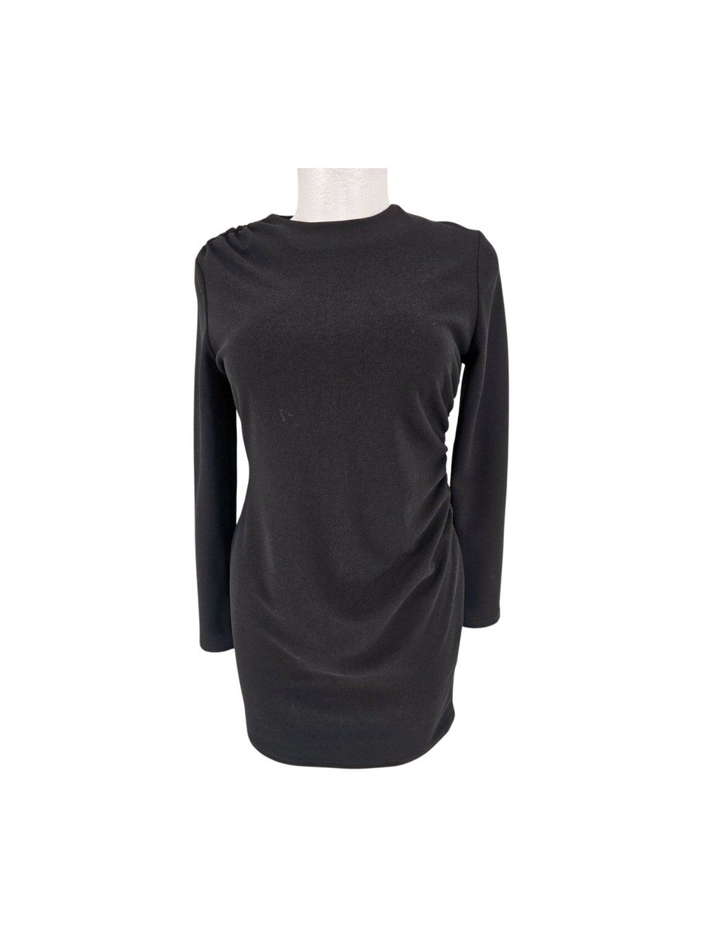 vel. M - UK 12/14 EUR 40/42 - jednoduché šaty kopírující křivky , pevnější lehce pružný materiál , bez podšívky , nařasení na boku , zip na zádech