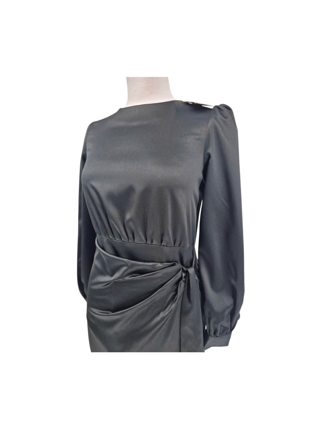 hezky propracované šaty , hodně pružný materiál s lesklou černou nitkou , zip na boku , mají menší vycpávky na ramenou