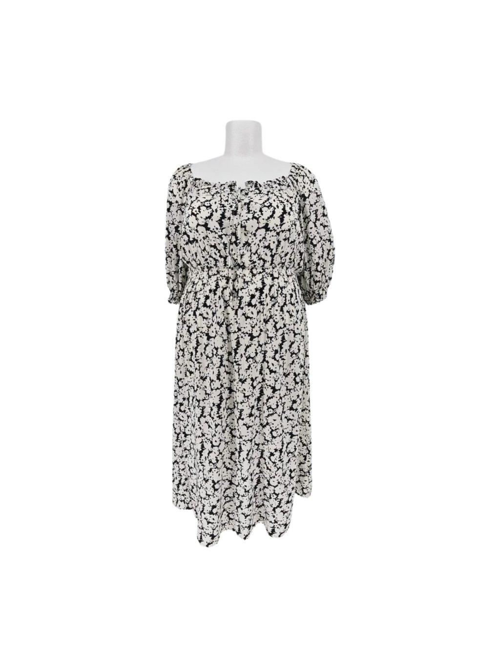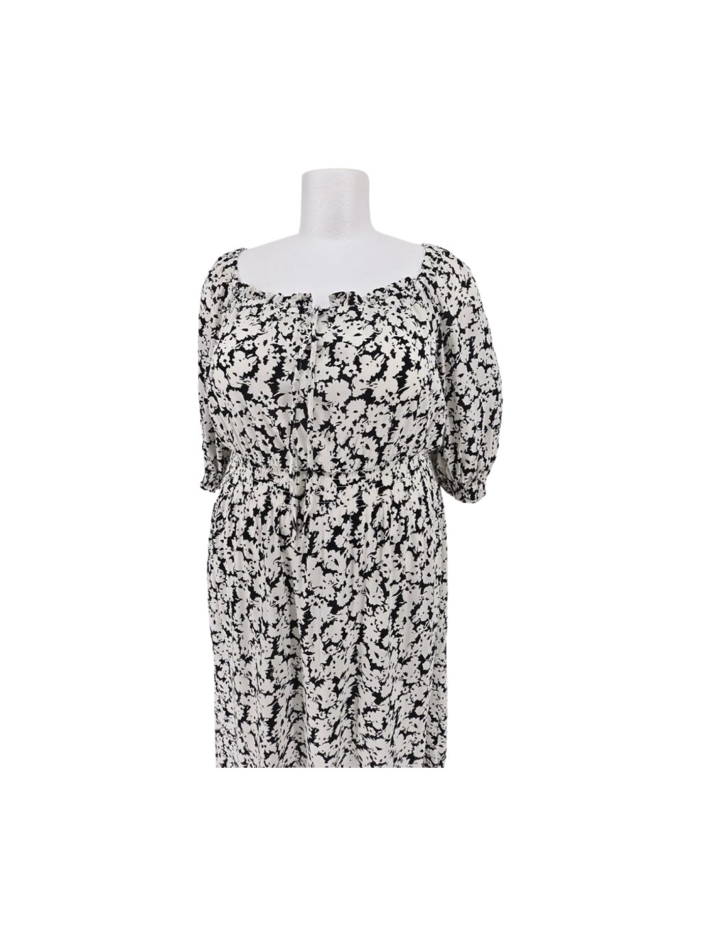 asymetrické šaty s květinovým motivem, s kosticemi na prsou