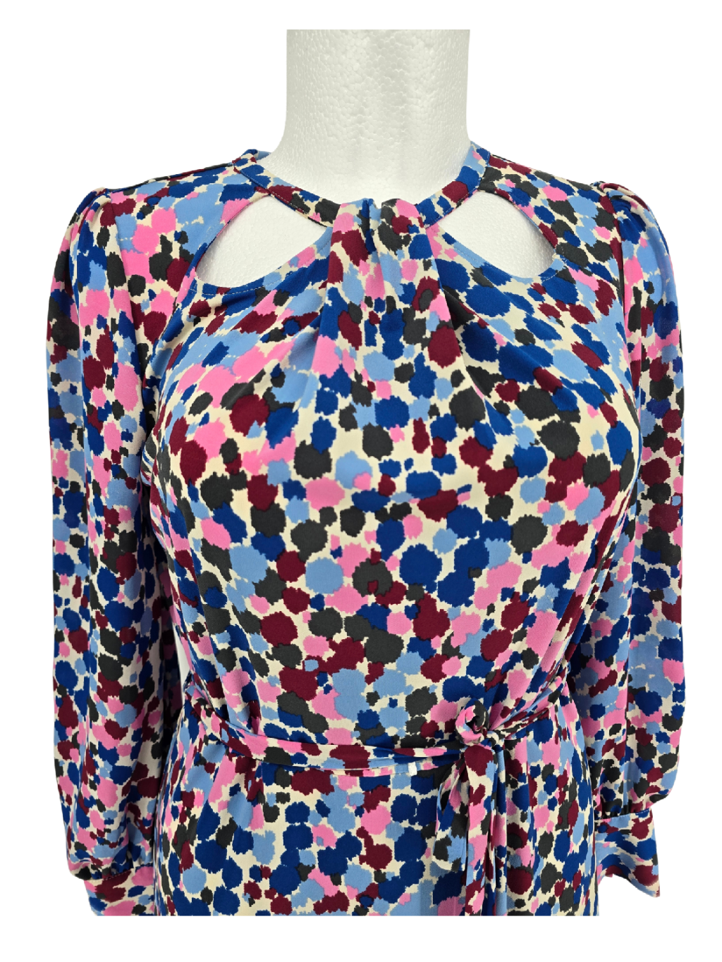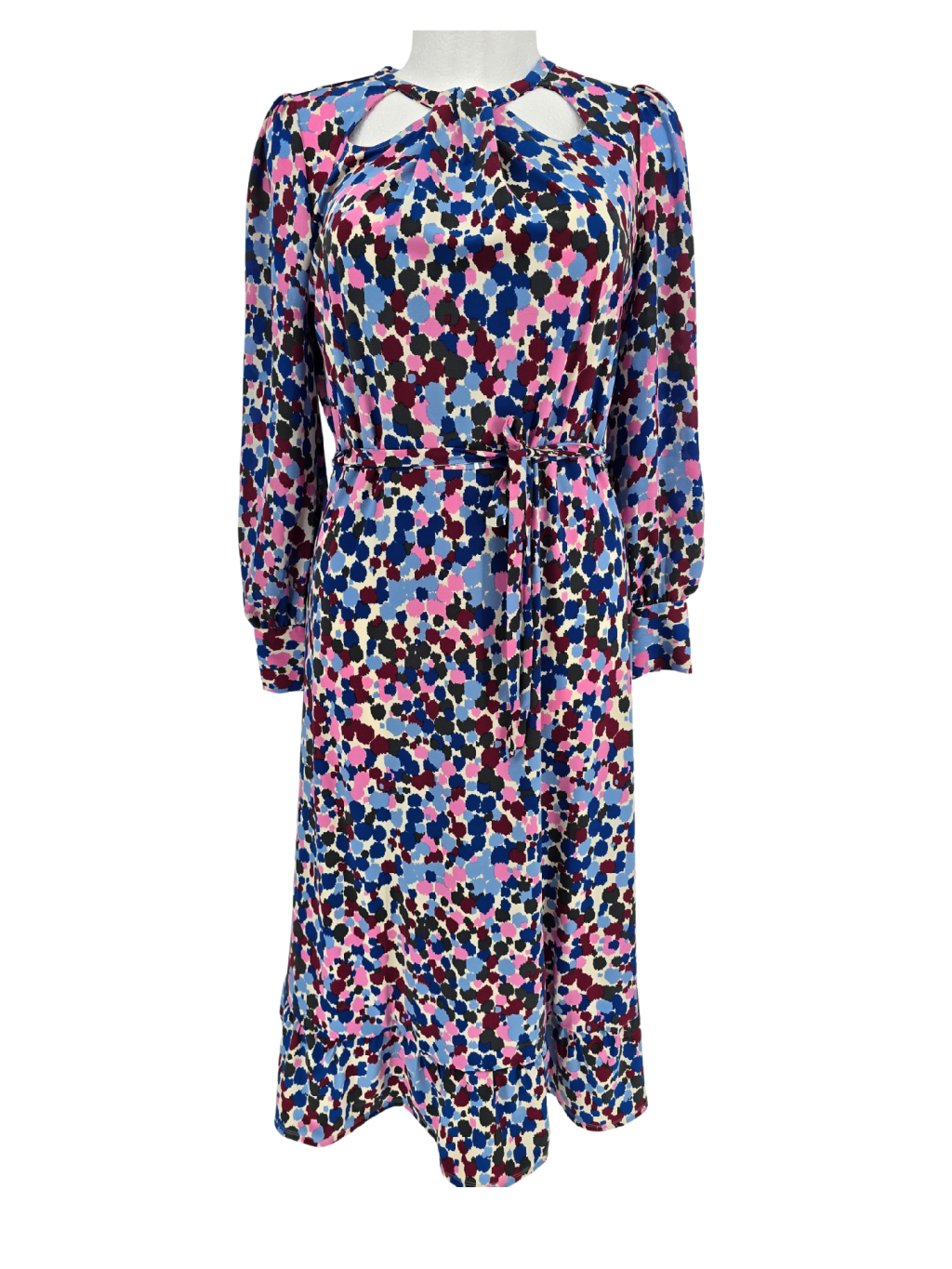 vel. UK 14 , ale jsou menší , max. 40 - nemačkavé šatičky ve výrazné barvičce, s ptáčky a květy , posuvná ramínka