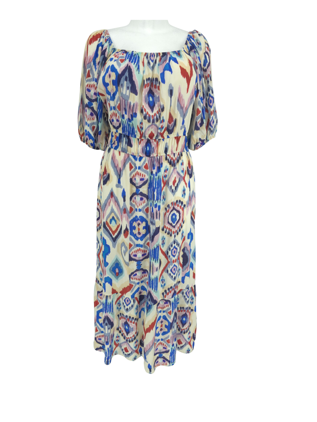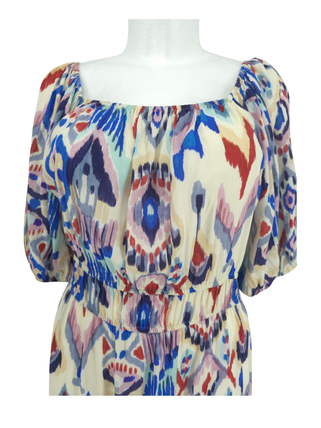 vel. UK 22/24 - EUR 50/52 - krásné šaty z příjemného lehčího materiálu kolem výstřihu i v pase do gumy , stejně tak i na rukávech