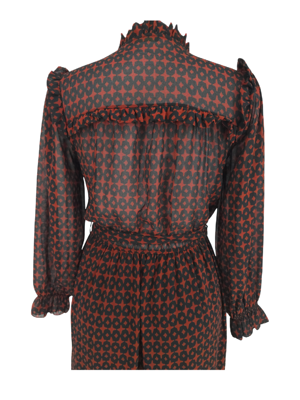 vel. neuvedena cca 40/42 - krásné šaty s drobným volánkem u krku , kromě rukávů a zad podšité pružnou jemnou viskozovou černou látkou , v pase guma
