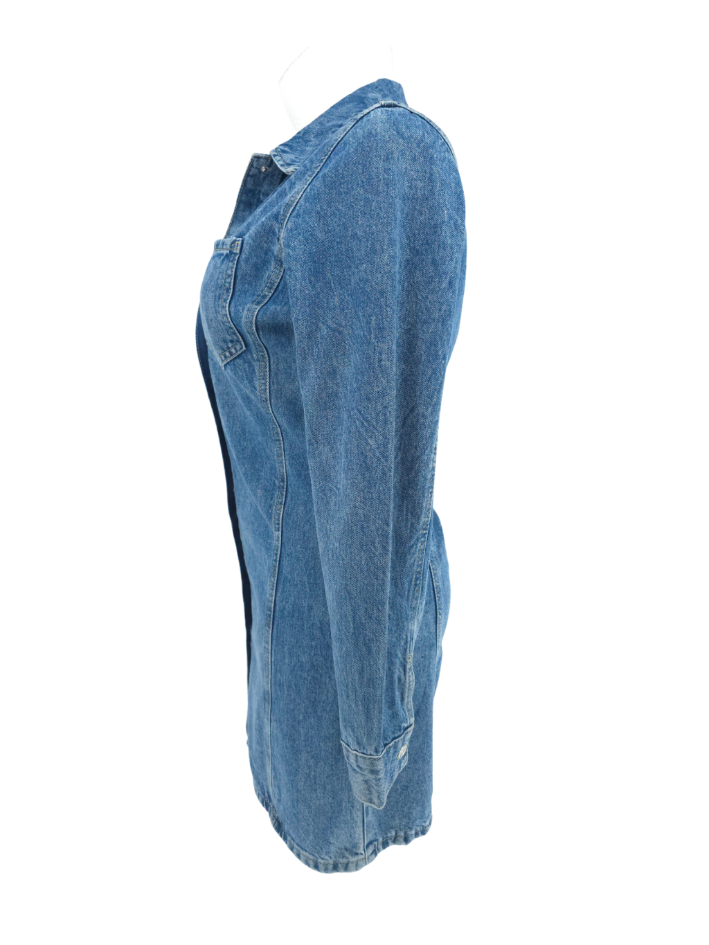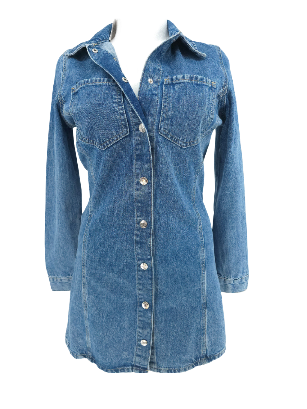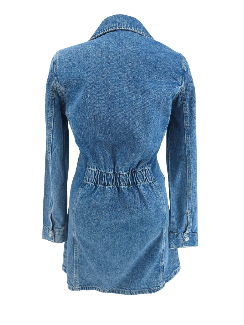 vel. UK 14 EUR 40/42 - pěkné riflové šaty z pevnější bavlny , vzadu do gumy , zapínání na patentky