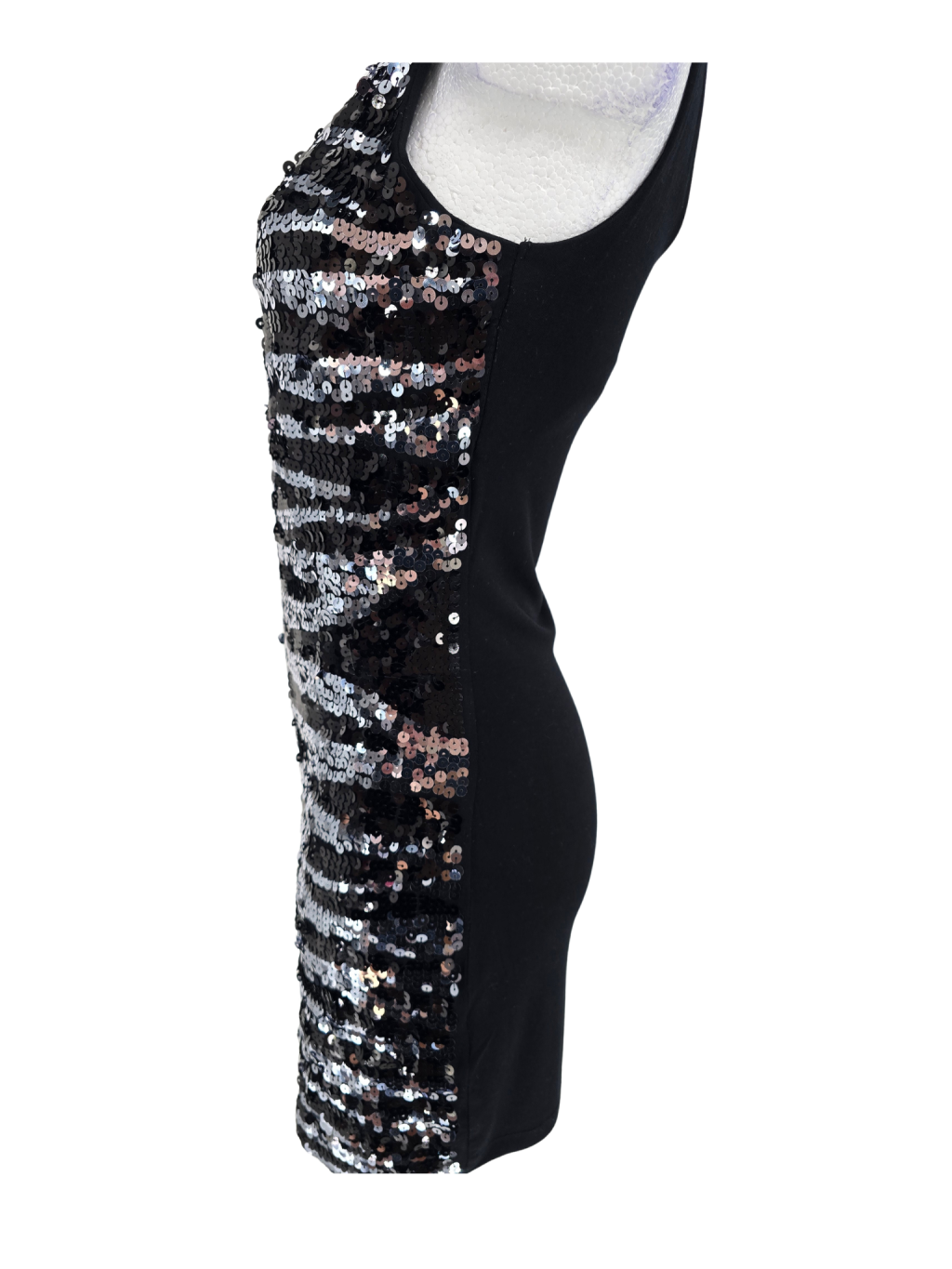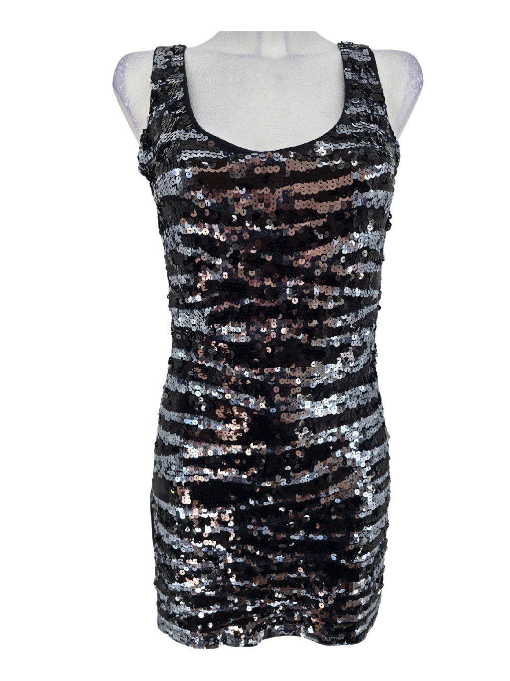 vel. UK 12 EUR 38/40 - pružné šaty pošité flitry v přední části - skvělý kousek na letní party