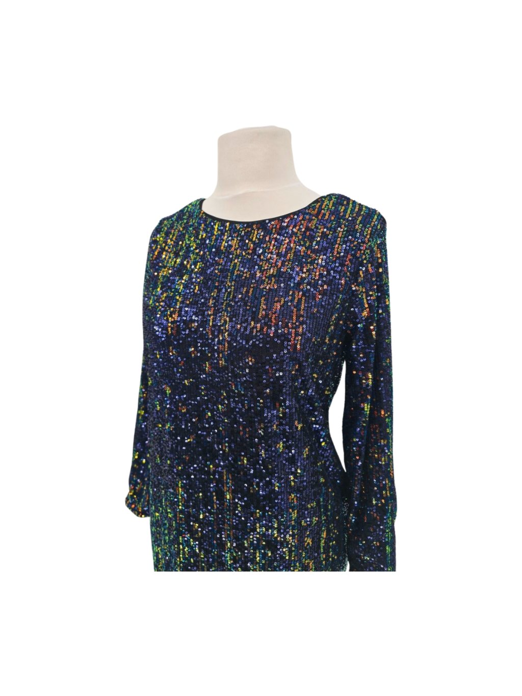 pružné černé šaty se zlatou nitkou , mají podšívku , jen rukávy jsou průhledné
