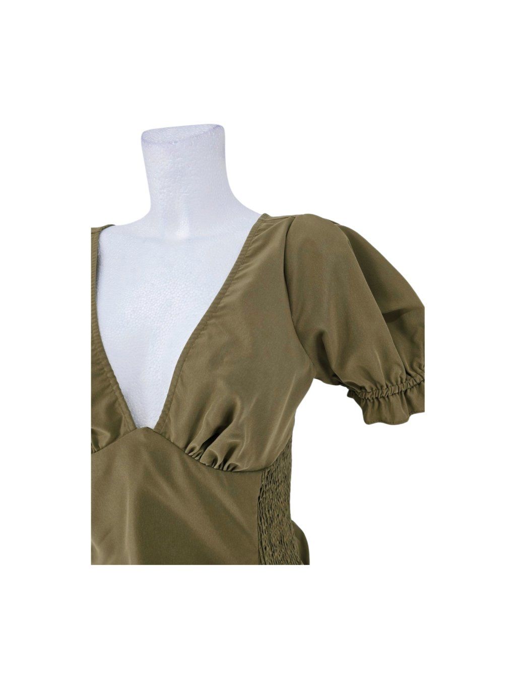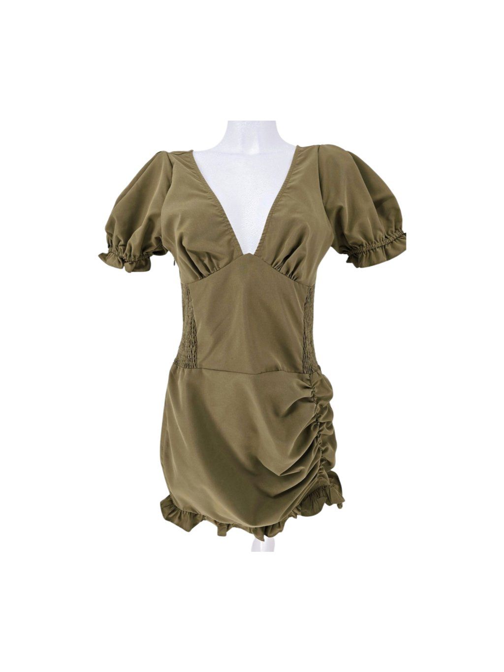 khaki řasené šaty PRETTY LITTLE THING