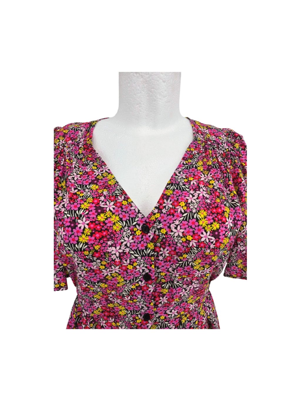 vel. UK 16 EUR 42/44 - zatržená nitka - foto - jinak v pořádku , lehčí šaty , s podšívkou , vzadu v pase guma