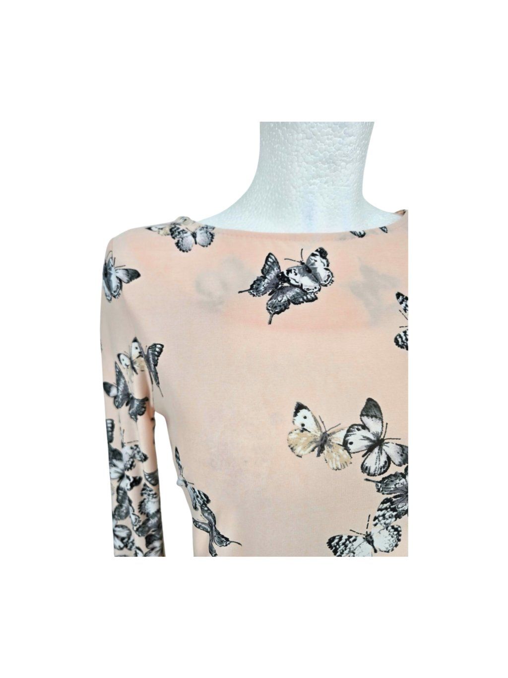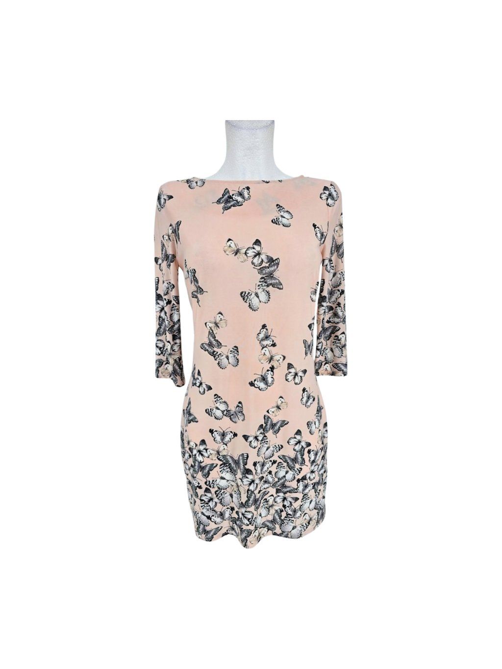vel. UK 10 EUR 36/38 - pružné splývavé šaty nebo tunika v jemné broskvové barvě s motýlky