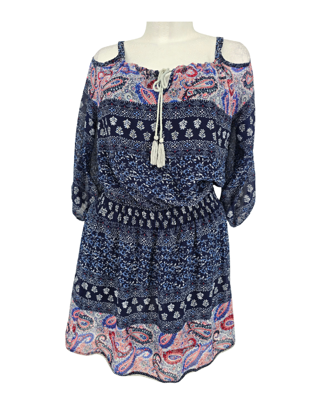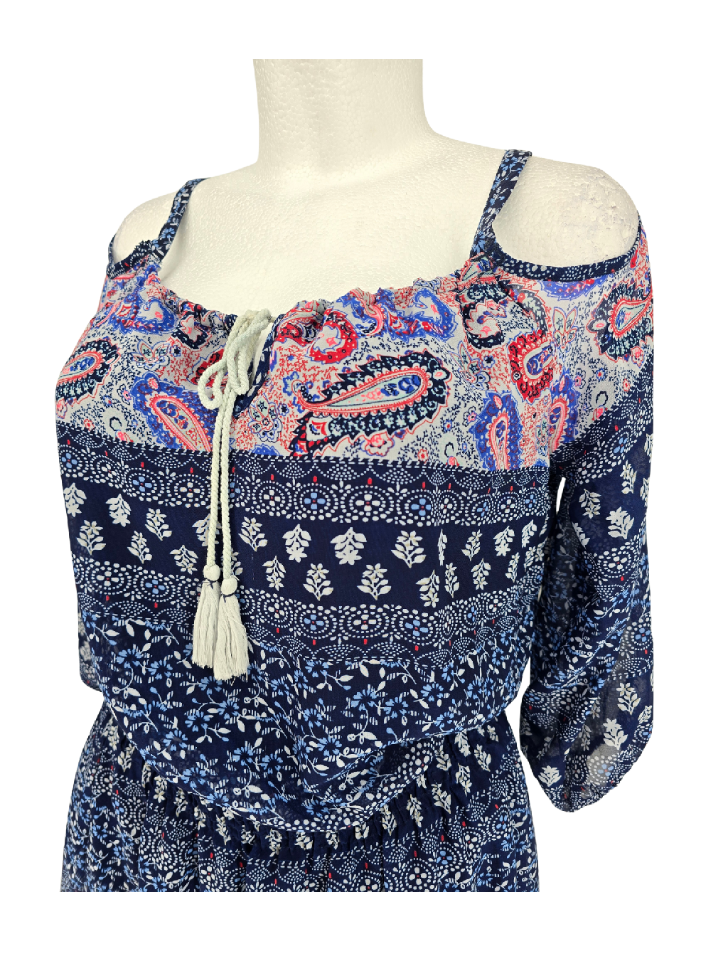 vel. UK 16 EU 42/44 - pěkné letní šaty v boho stylu , lehký nemačkavý materiál , vespod lehká pružná podšívka , v pase guma
