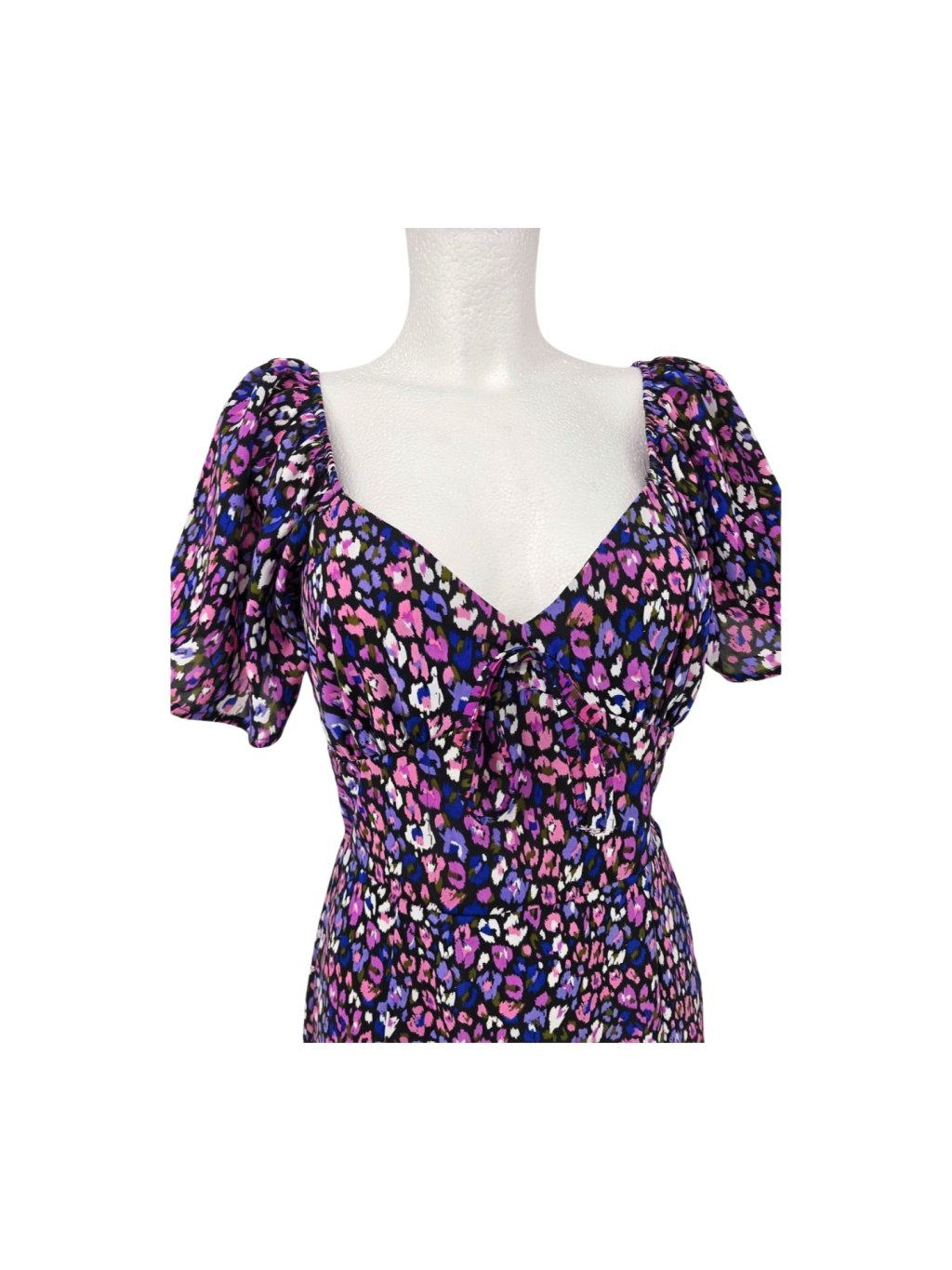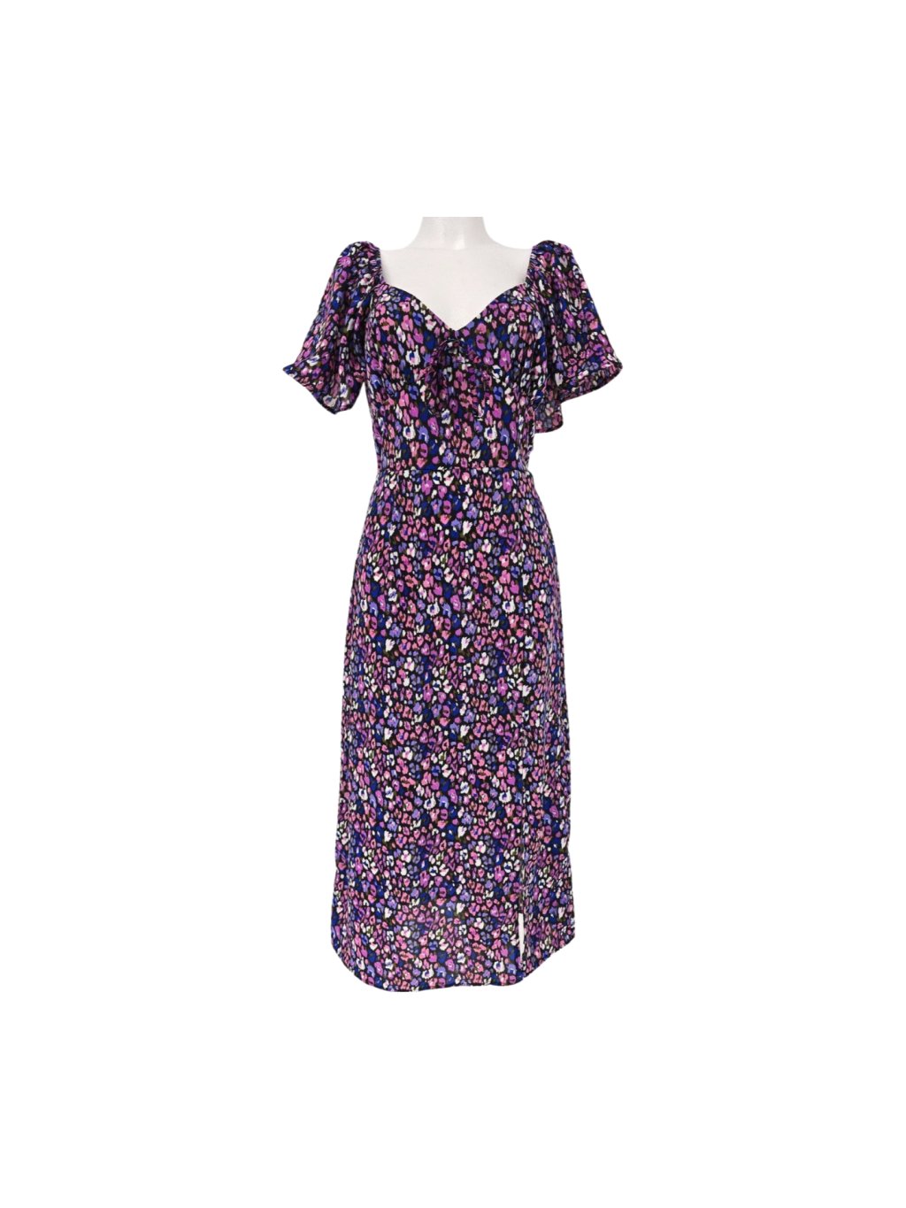 vel UK 12 EUR 38/40 - vada roztržený šev na podšívce , pěkné šaty z pevnějšího materiálu, lehce pružné , s průsvitným volánem a horní částí zad