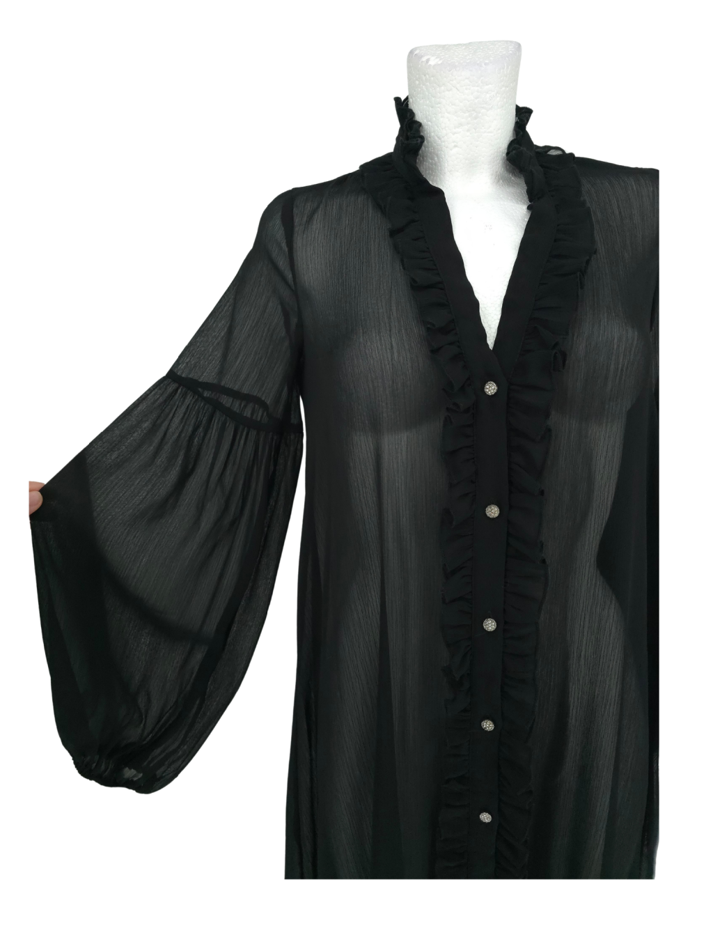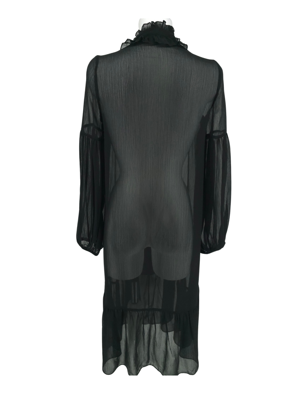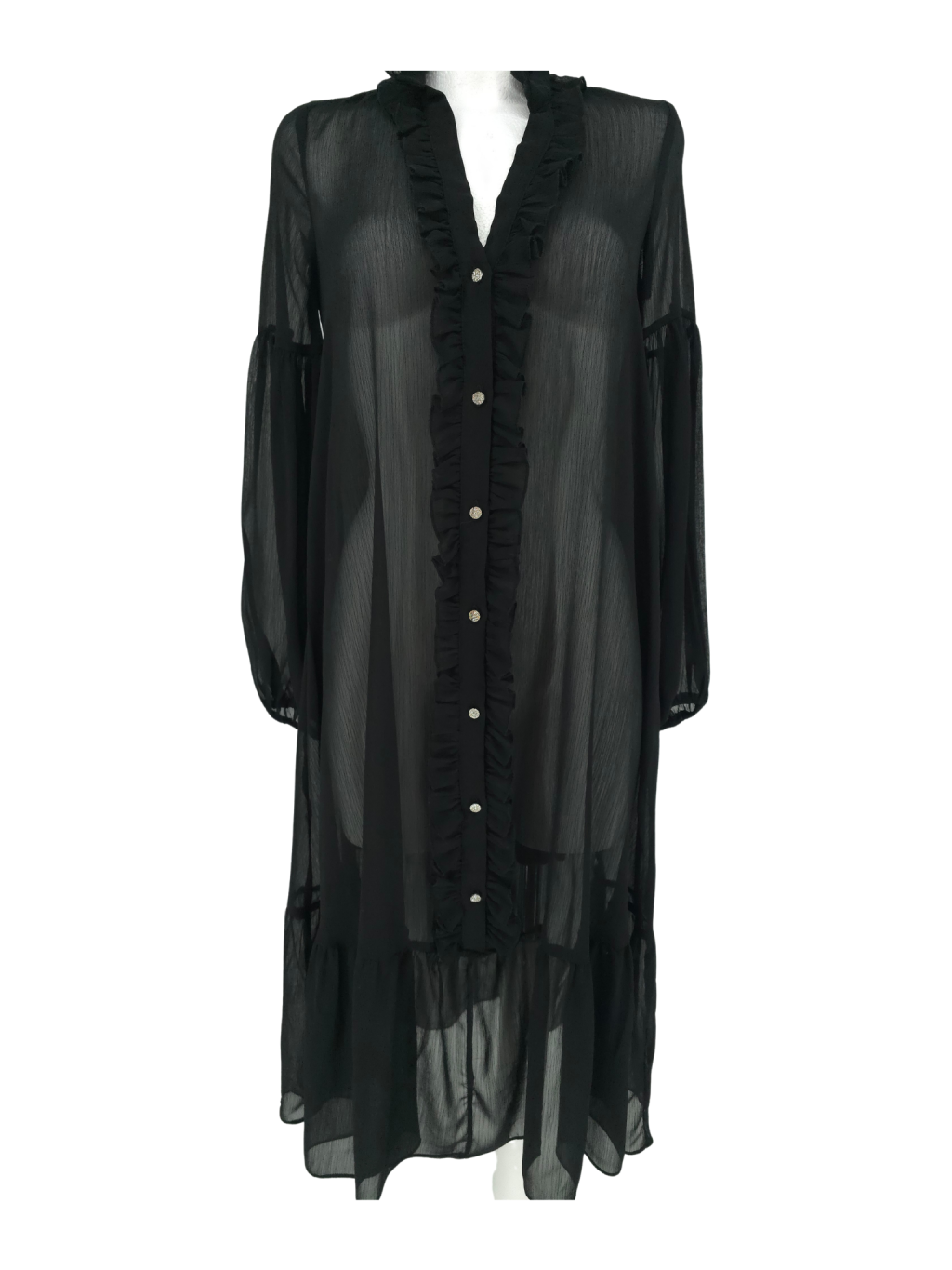 vel. XS - 36 - nemačkavé pružné šaty s volánkem dole , širší rukávy do gumy , nad prsy žabičkování