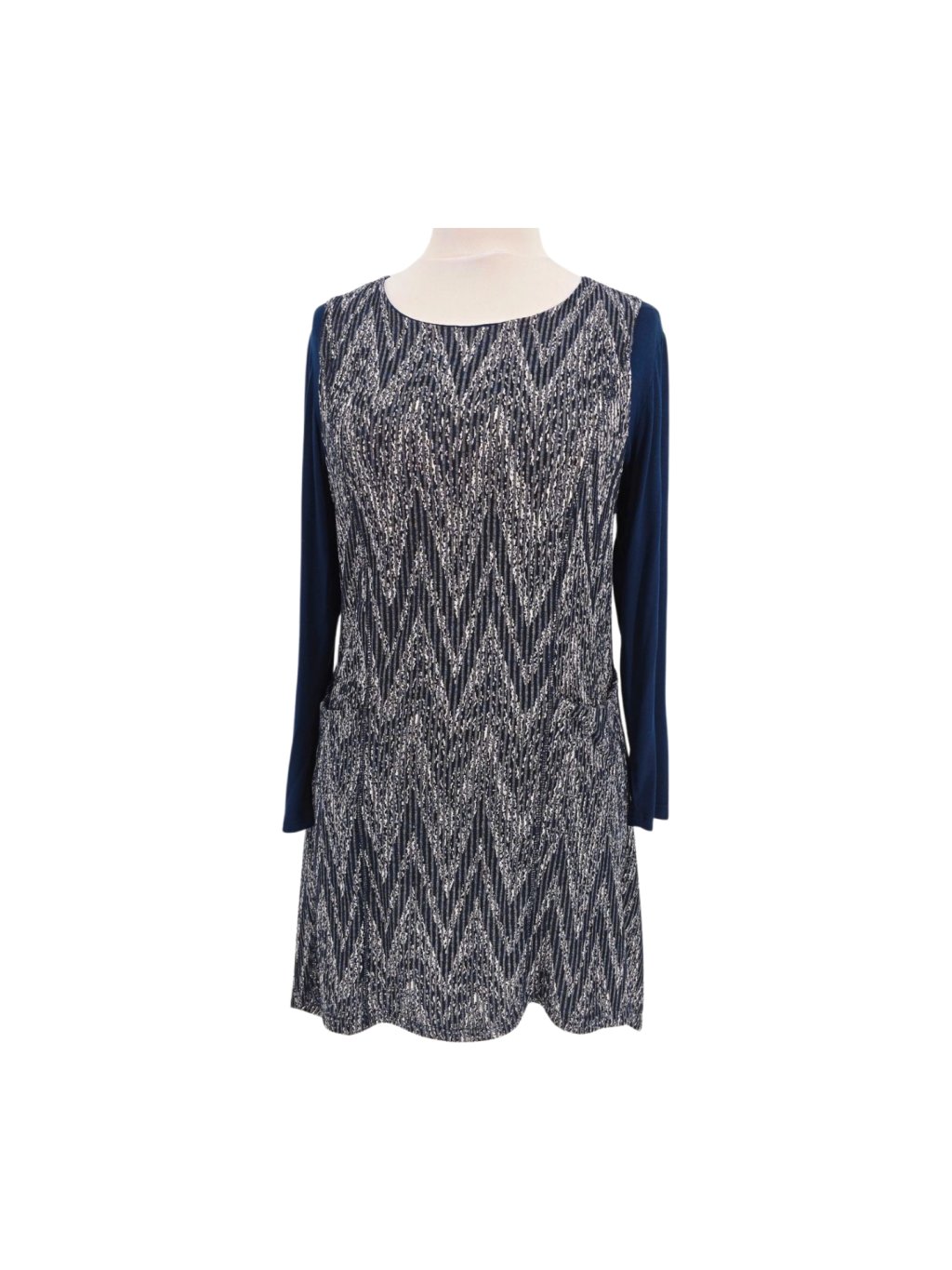 Materiál: polyester, modrá část viskoza + elasten