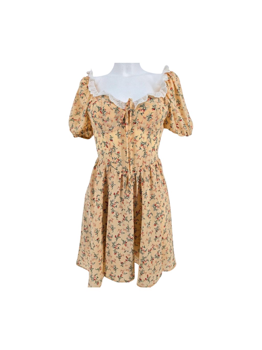 vel UK 12 EUR 38/40 - vada roztržený šev na podšívce , pěkné šaty z pevnějšího materiálu, lehce pružné , s průsvitným volánem a horní částí zad