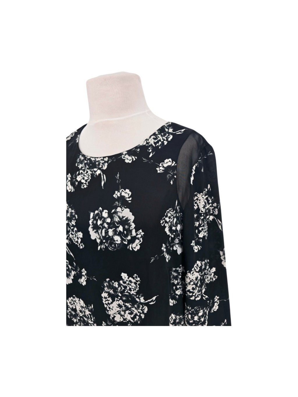 asymetrické šaty s květinovým motivem, s kosticemi na prsou