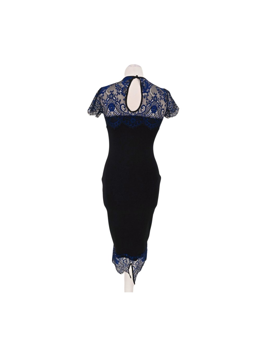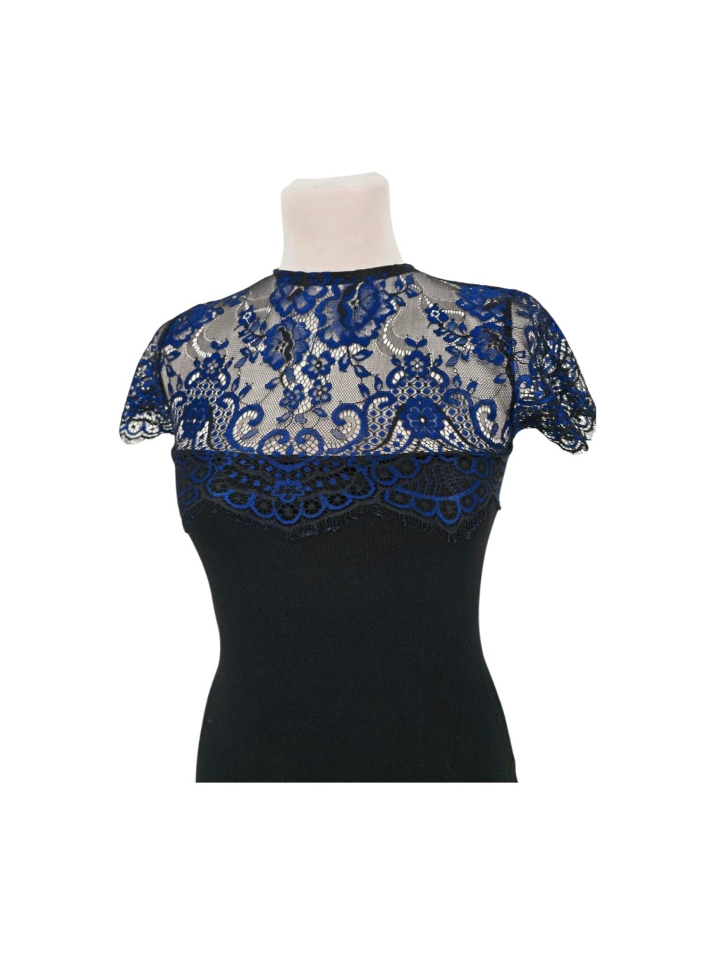 hezky propracované šaty , hodně pružný materiál s lesklou černou nitkou , zip na boku , mají menší vycpávky na ramenou