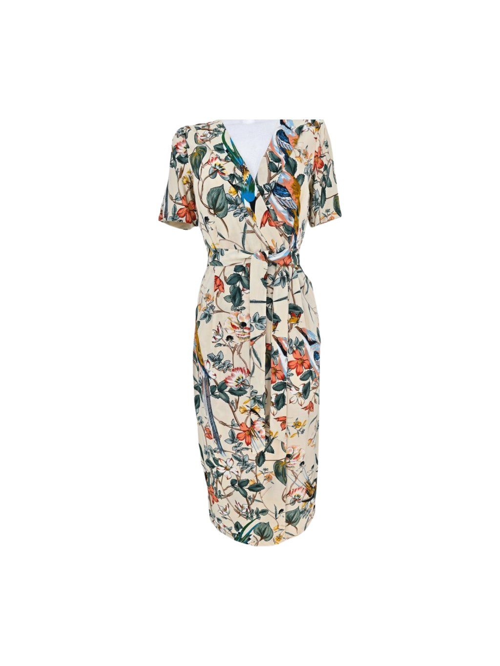 vel. UK 6 EUR 32/34 - nádherné barevné šaty z příjemné měkké viskozy , látka nepruží , zip na zádech , mají kapsy, zavinovací efekt