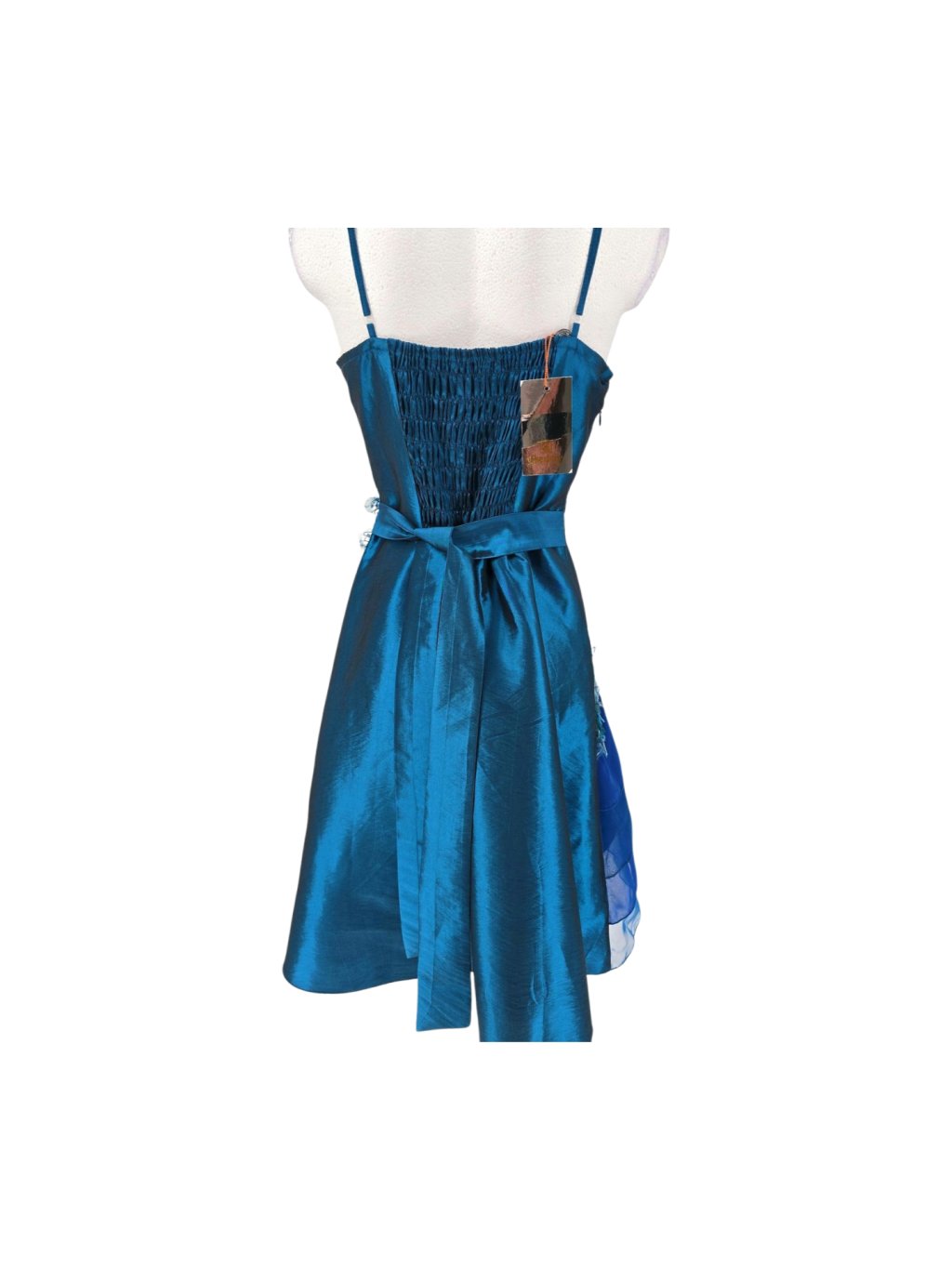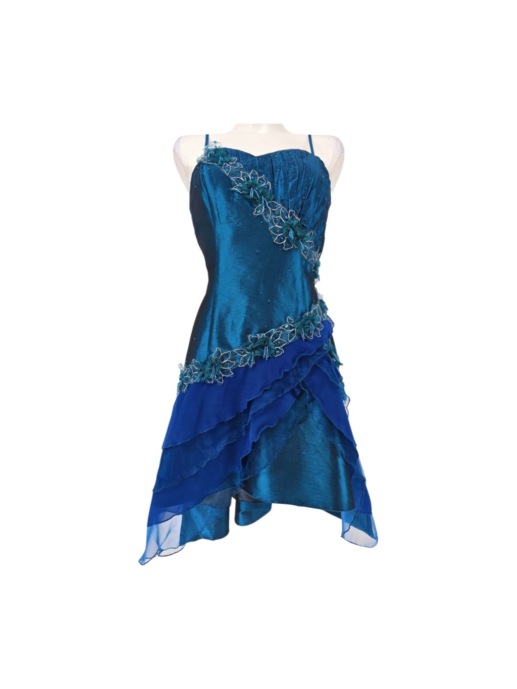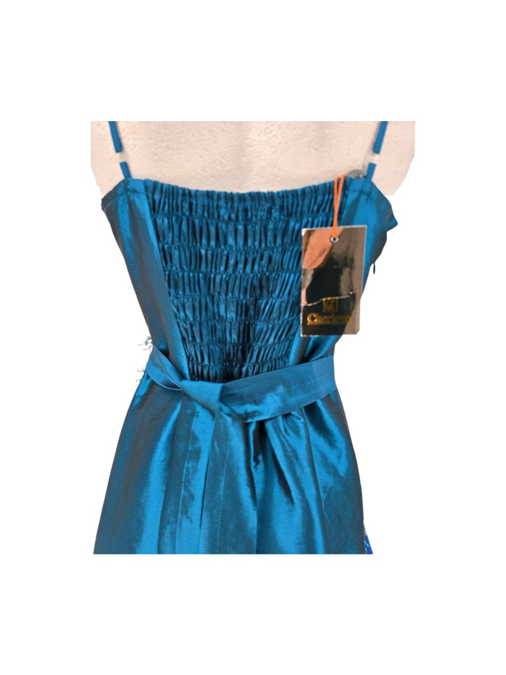 vel. UK 10 EUR 36 - pružné šaty s našitými kamínky a efektním řasením , ramínka jdou odepnout , sytě tyrkysová barva